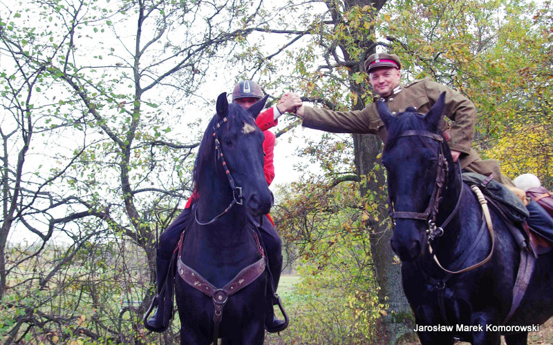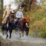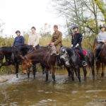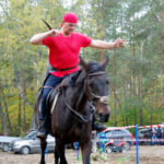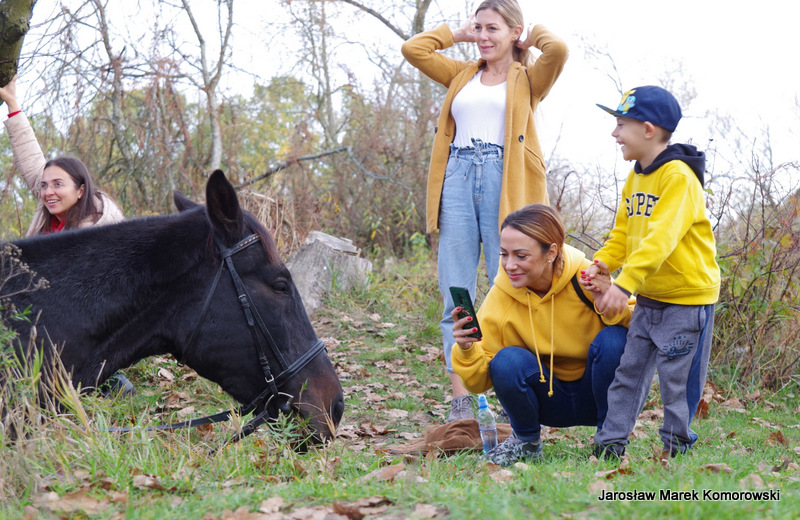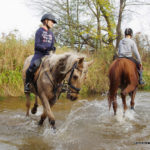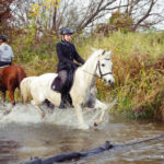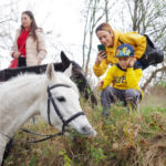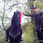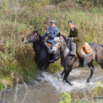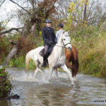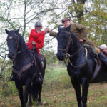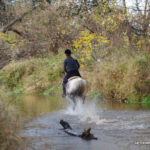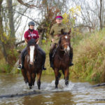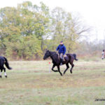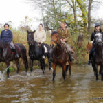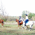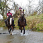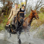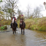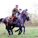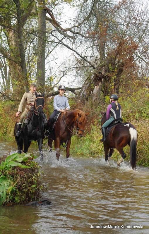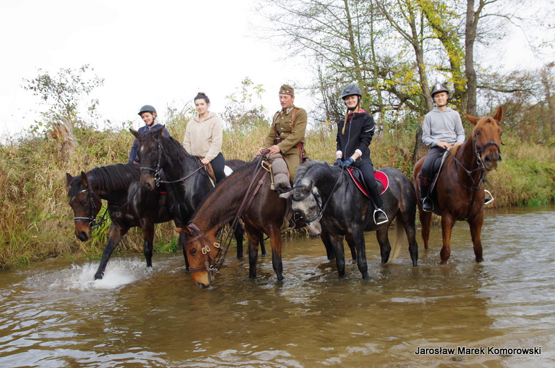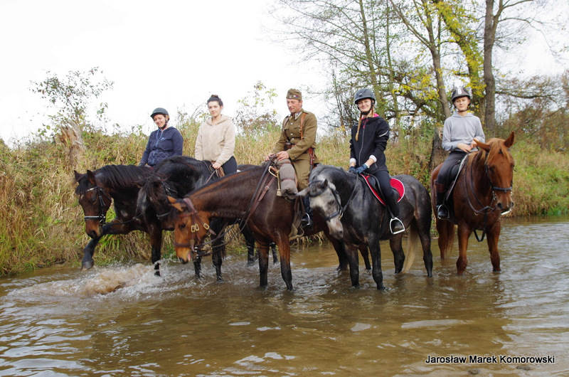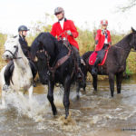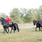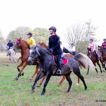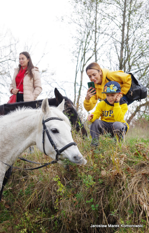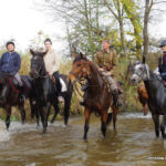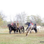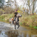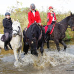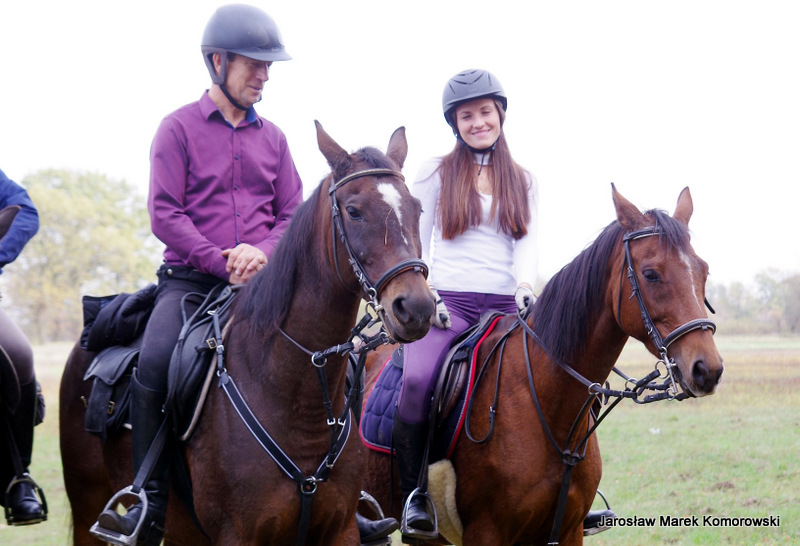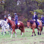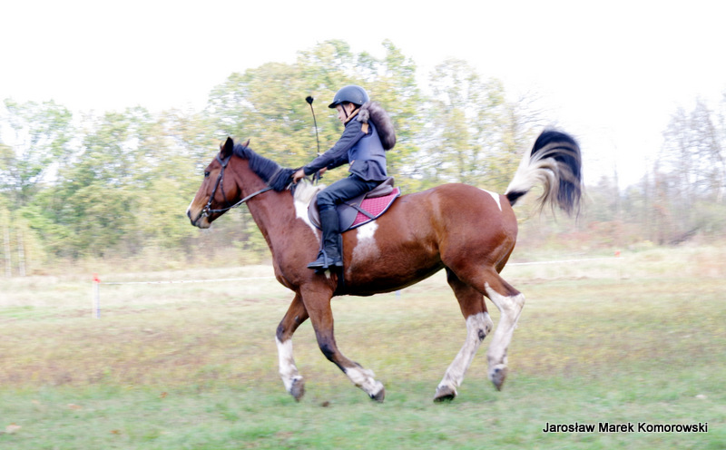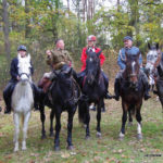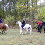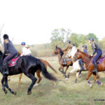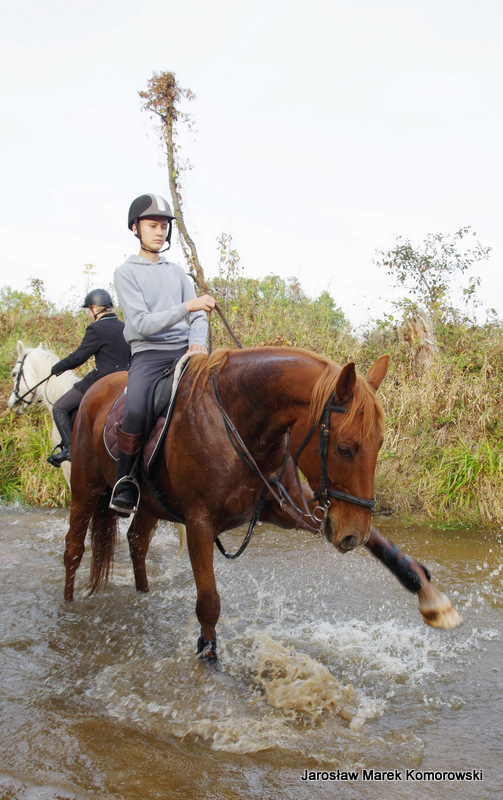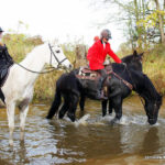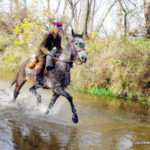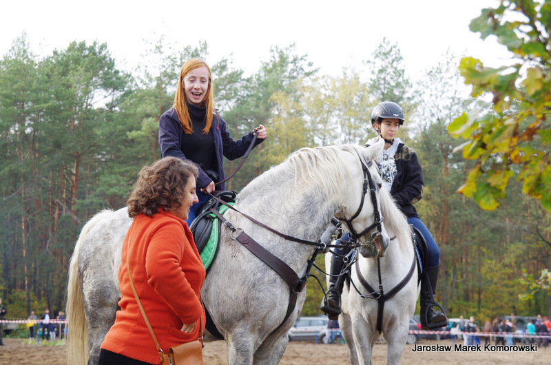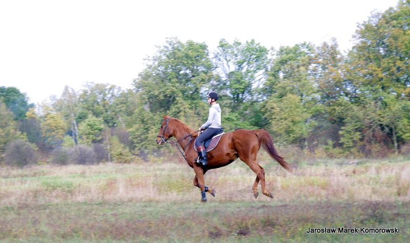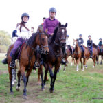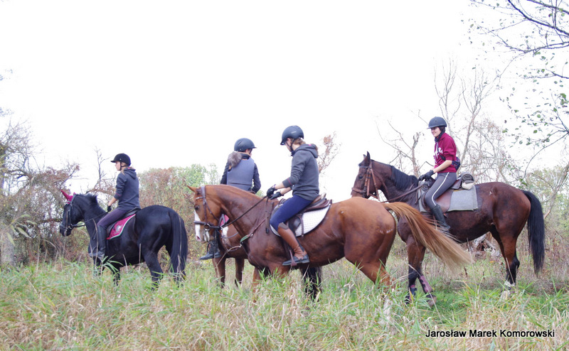 Wśród jeźdźców (Hubertus konny) urządzana jest natomiast tradycyjna gonitwa, która organizowana jest najczęściej na przełomie października i listopada. W trakcie biegu, uczestnicy konno ścigają tzw. Lisa, którym jest jeździec z ogonem przypiętym do lewego ramienia. Osoba, której uda się go zerwać ? wygrywa. Jako zwycięzca ma ona prawo wykonać rundę honorową wokół miejsca pogoni, i za rok sama ucieka jako lis. Często gonitwę poprzedza wspólny teren, który jest także swego rodzaju rozgrzewką dla wszystkich uczestników. Dla najmłodszych adeptów jeździectwa często organizowane są różnego rodzaju gry i zabawy, które polegają na odnalezieniu np. ukrytej lisiej kity. Zabawa kończy się wspólnym biesiadowaniem przy ognisku.