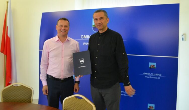 Burmistrz Tłuszcza Paweł Bednarczyk podpisał umowę z Panem Arturem Nizińskim- Prezesem Zarządu Aran Sp. z o.o. na budowę 7,5 km sieci kanalizacji sanitarnej, 5 przepompowni oraz 1,6 km odgałęzień od kanału głównego do granic posesji. Wartość zadania pn. ?Rozbudowa infrastruktury wodno- ściekowej poza granica aglomeracji KPOŚK na terenie Gminy Tłuszcz? wynosi 10 mln zł.