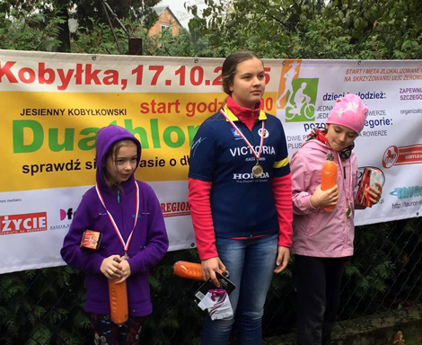 Pierwsze miejsce w II Jesiennym Kobyłkowskim Duathlonie zajął kat. dorośli 17+ Leśniak Adam, na drugiej pozycji uplasował się Radomski Kazimierz na trzeciej Adamczyk Paweł. W kat. kobiet wygrała Aleksandra Klimczuk. Natomiast w kat. szkoła podstawowa pierwsze miejsca zajęli: . Julia Ryst i Szymon Bisowski, drugie: Amelia Bisowska, trzecie Klara Budek , zaś w kat. gimnazjum zwycięzcami zostali: Oliwia Majewska i Dominik Kucharek, a na drugim miejscu uplasował się Stanisław Friemann. Wszyscy zawodnicy w swoich kategoriach otrzymali pamiątkowe medale, a osobom, które uplasowały się w pierwszej trójce nagrody wręczyli : Przewodniczący Mazowieckiej Wspólnoty Samorządowej kobyłka Paweł Majkowski, Przewodniczący Komisji Dziedzictwa Narodowego i Kultury Rady Powiatu Wołomińskiego Andrzej Zbyszyński oraz Prezes Szkoły Kolarskiej Family Active Dariusz Biernacki.