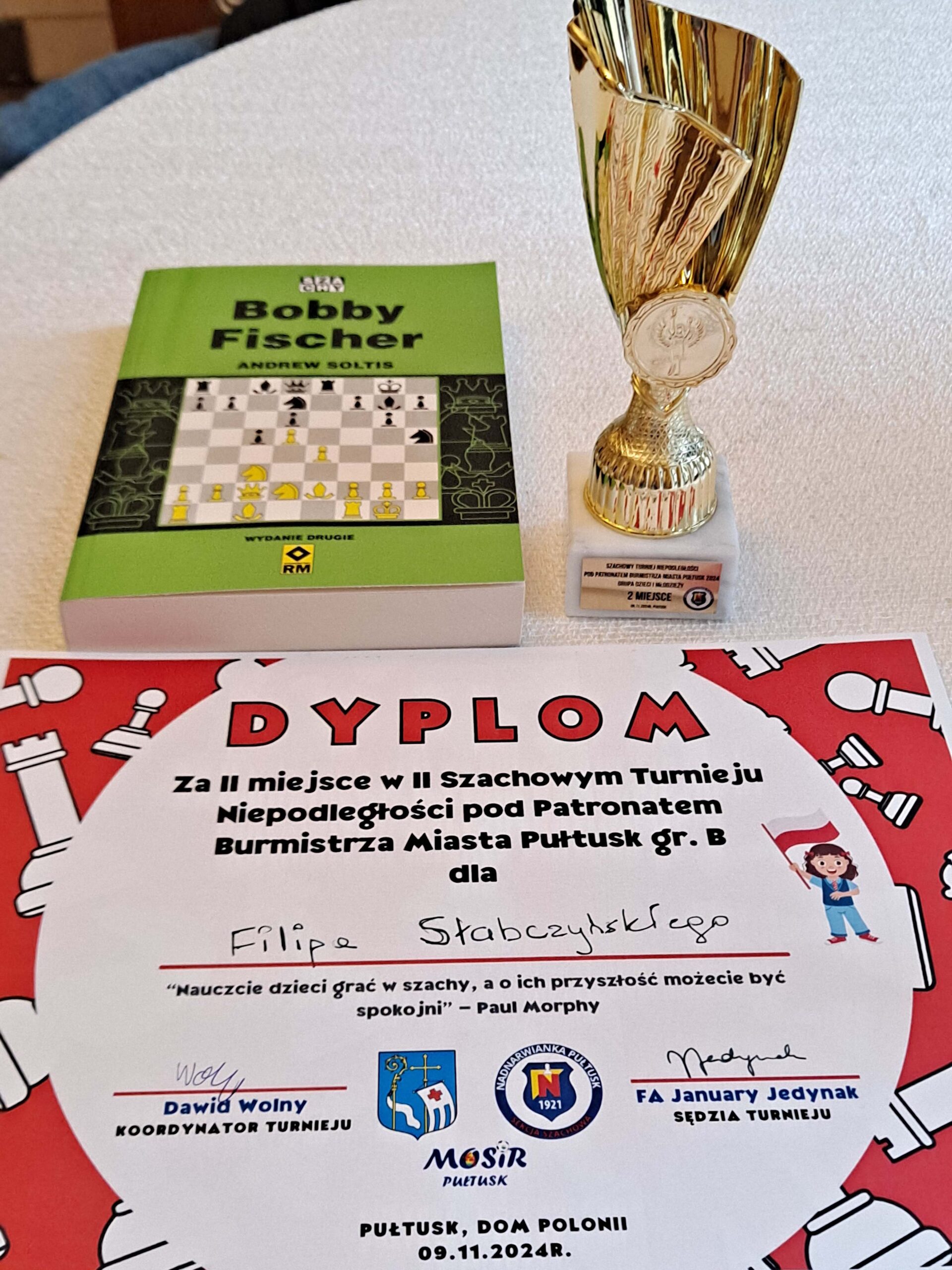 Gratulujemy naszemu zawodnikowi udziału w turnieju i zdobycia II miejsca, życząc dalszych sukcesów na Szlaku Szachowej Przygody.