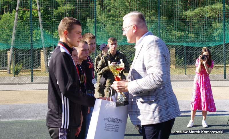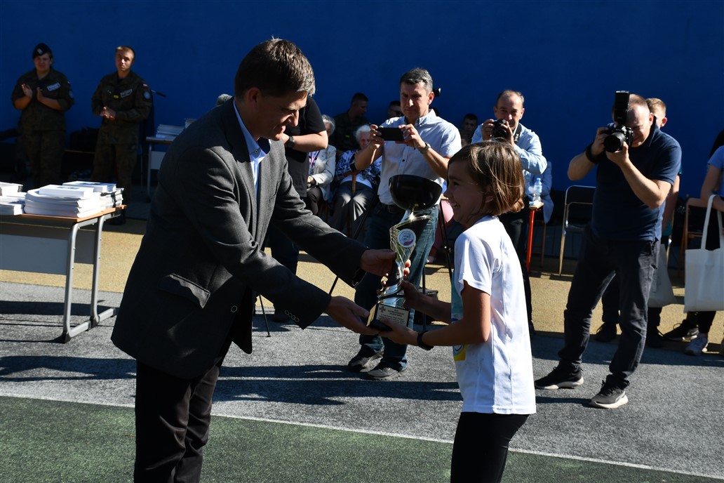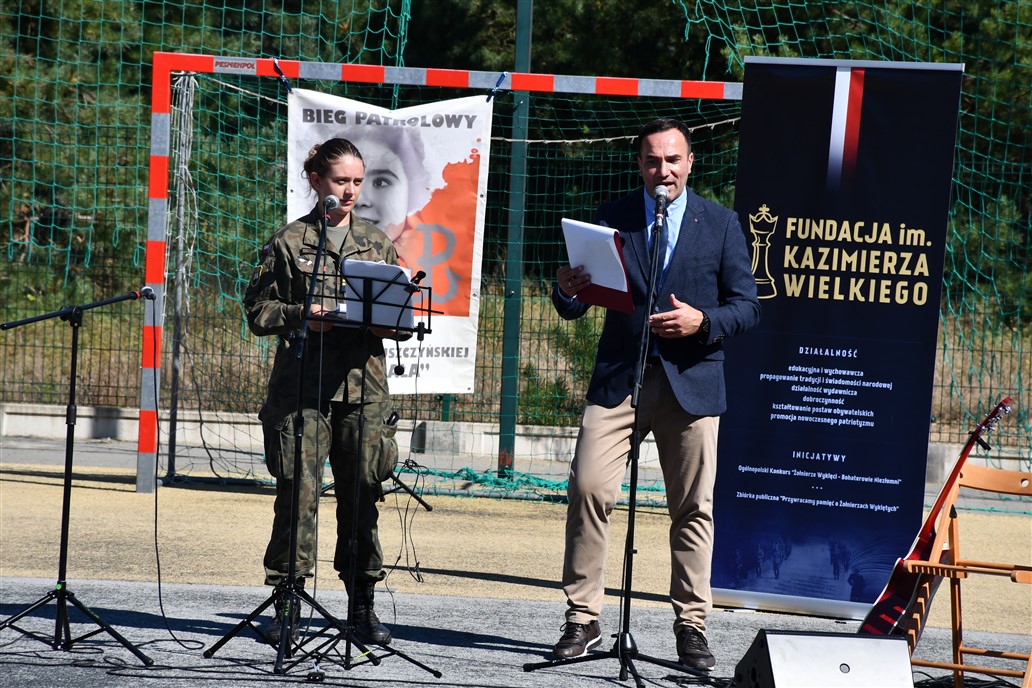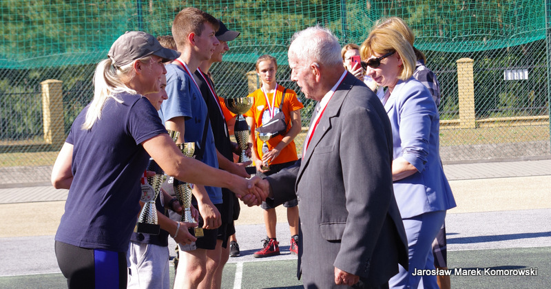Nagrody dla NAJMŁODZEGO uczestnika biegu powędrowały do Uczennicy Zofii Proczek ze SP w Dębem Wielkim i dla NAJSTARSZEGO uczestnika biegu do p. Zdzisława Sokólskiego ze Związku Kombatantów i Byłych Więźniów Politycznych RP.