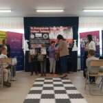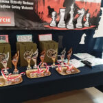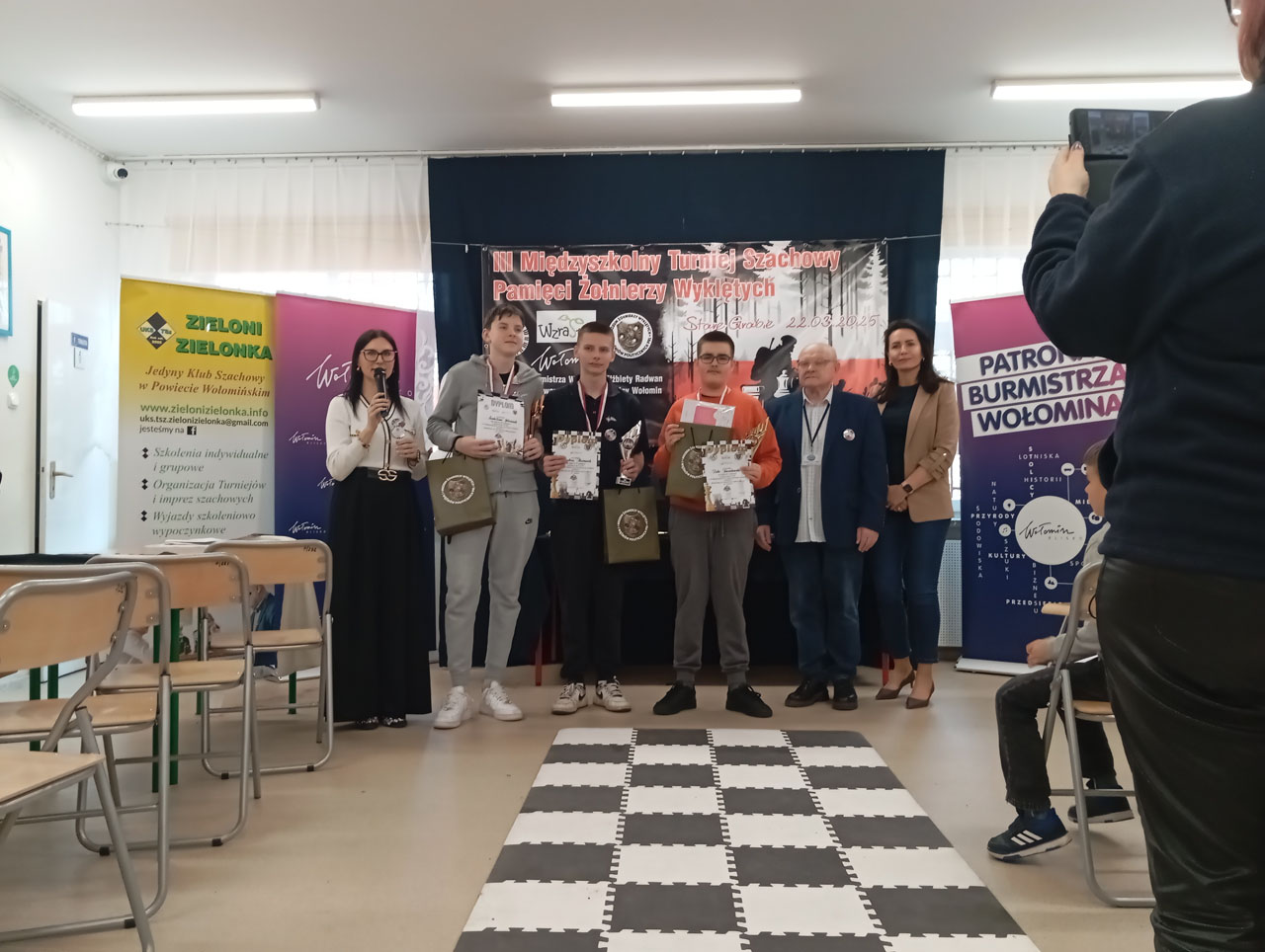 Po zakończeniu szachowych zmagań i w oczekiwaniu na wyniki turnieju uczestnicy wzięli udział w spotkaniu z członkami Grupy Historycznej ze „Zgrupowania Radosław”. Pani Ilona Banachowicz, pan Tomasz Karasiński i pan Rafał Dobrowolski, zademonstrowali umundurowanie i broń z Powstania Warszawskiego. Następnie rekonstruktorzy przedstawili w zarysie sylwetkę jednego z najdzielniejszych żołnierzy wyklętych Hieronima Dekutowskiego. Uczestnicy słuchali opowieści z ogromnym zaciekawieniem. Zatracili się w przemyśleniach, słuchając wspomnień. Po spotkaniu przypomnieliśmy sobie, że powinniśmy honorować tych, którzy z wielką odwagą wyszli na ulice, by walczyć o wolność naszej ojczyzny.