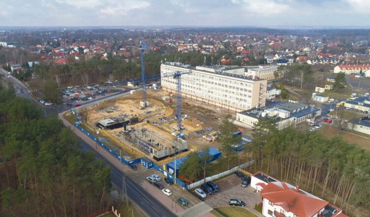 Dziś już pełną parą idzie zarówno budowa nowej części szpitala jak również bazy parkingowej.