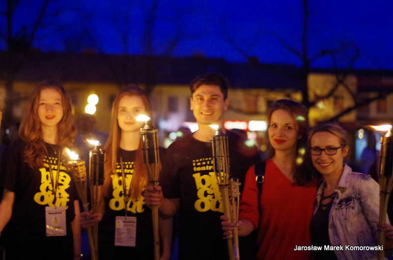 W tym roku wyjątkowo festiwal rozpoczął się w piątek od kolorowej parady ulicami miasta. Barwności wydarzeniu dodał udział Teatr Ognia, który prowadził korowód od pasażu Osiedla Niepodległości do Palcu 3 Maja. Uczestnicy pochodu z uśmiechem na ustach szli w rytmie bębnów oraz w towarzystwie szczudlarzy! Na Placu 3 Maja Burmistrz Wołomina Elżbieta Radwan, Zastępca Burmistrza Edyta Zbieć oraz Dyrektor Festiwalu Piotr Stawski otworzyli festiwal i zaprosili wszystkich zgromadzonych na pokaz Teatru Ognia oraz plenerowe widowisko muzyczne w wykonaniu aktorów z Teatru Pijana Sypialnia.
