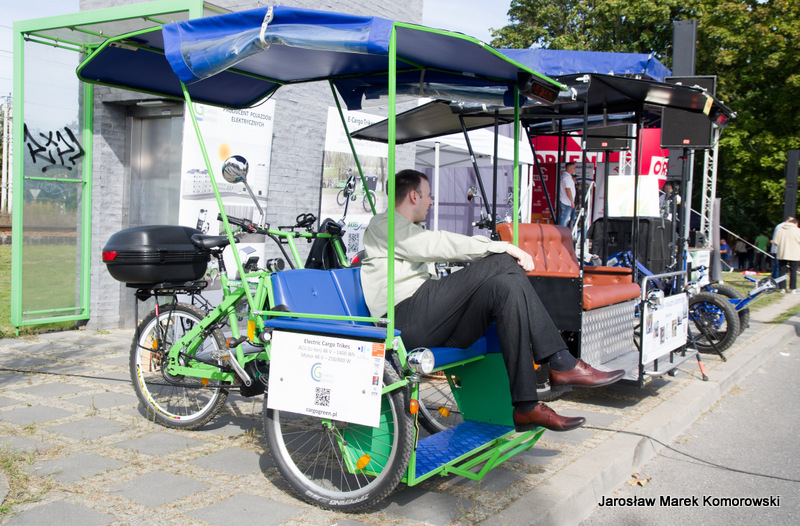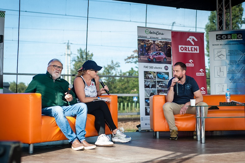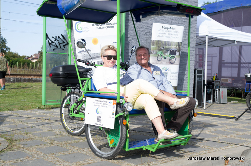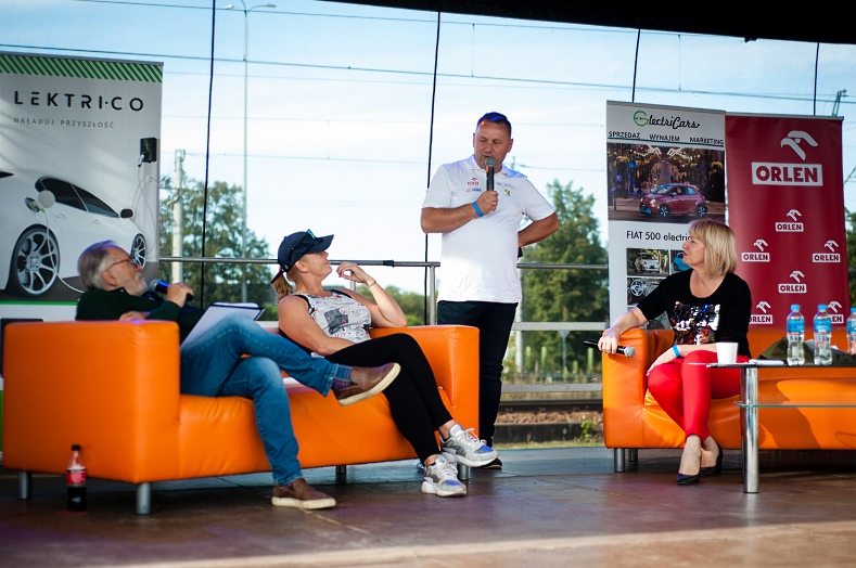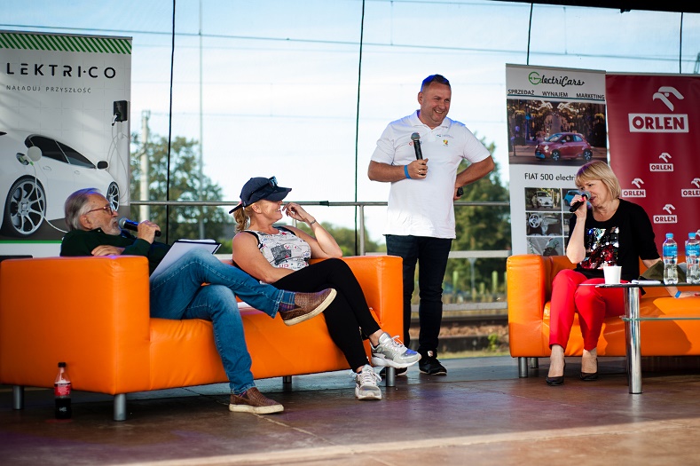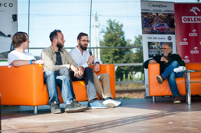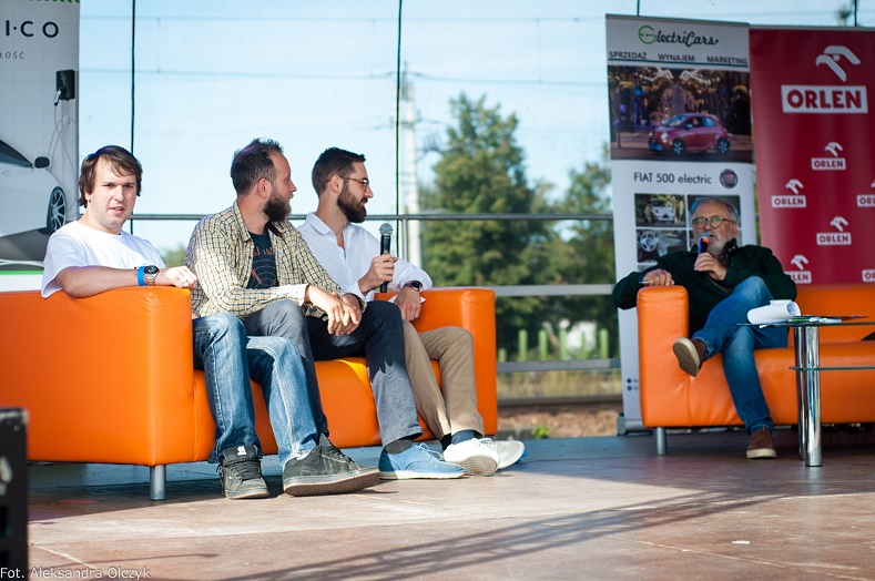 Nie zabrakło też konkursów z cennymi nagrodami m.in. w postaci roweru elektrycznego ufundowanego przez firmę ?ForEko? oraz wywiadów prowadzonych na scenie przez Włodzimierza Zientarskiego. Jego rozmówcami byli m.in. przedstawiciele takich firm, jak GO+Eauto, Nivette sp z o.o dealer marki Nissan, Tesla, Cargo Green, a także Maciej Mazur z Polskiego Stowarzyszenia Paliw Alternatywnych, który przedstawił nowy projekt pt: ?elektromobilni.pl?, Robert Staniewicz, miłośnik elektro-mobilności, który sam skonstruował i wykonał 3-kołowy rower elektryczny.