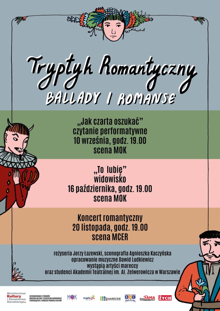 MOK przygotowuje nowy projekt teatralny TRYPTYK ROMANTYCZNY. BALLADY I ROMANSE, dotowany z Funduszu Promocji Kultury MKiDN. Na podstawie 12 ballad Adama Mickiewicza Jerzy Łazewski przygotowuje trzy widowiska eksperymentując z przestrzenią teatralną, kostiumem, przedmiotem na scenie, ale także z warstwą dźwiękową i muzyczną. W sferze interpretacji projekt jest próbą współczesnego czytania utworów romantycznych, ale także poszukiwaniem odniesień do ludowych tradycji. Chcemy wydobyć ich niesamowitość, mroczność, ale tak żeby zabrzmiały prosto i bardzo współcześnie.