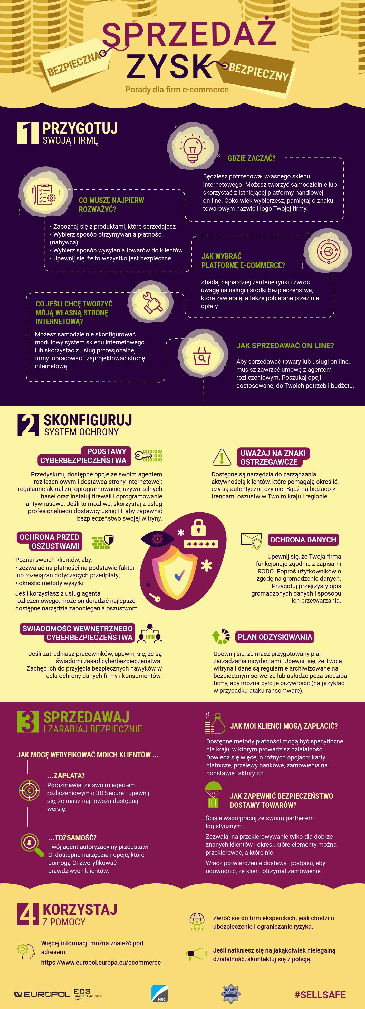 Przeniesienie Twojej firmy do świata e-commerce to duży krok. Istnieje kilka prostych środków, które możesz podjąć, aby #SellSafe. Europejskie Centrum ds. Walki z Cyberprzestępczością Europolu zebrało kilka wskazówek, które pomogą Ci zacząć: