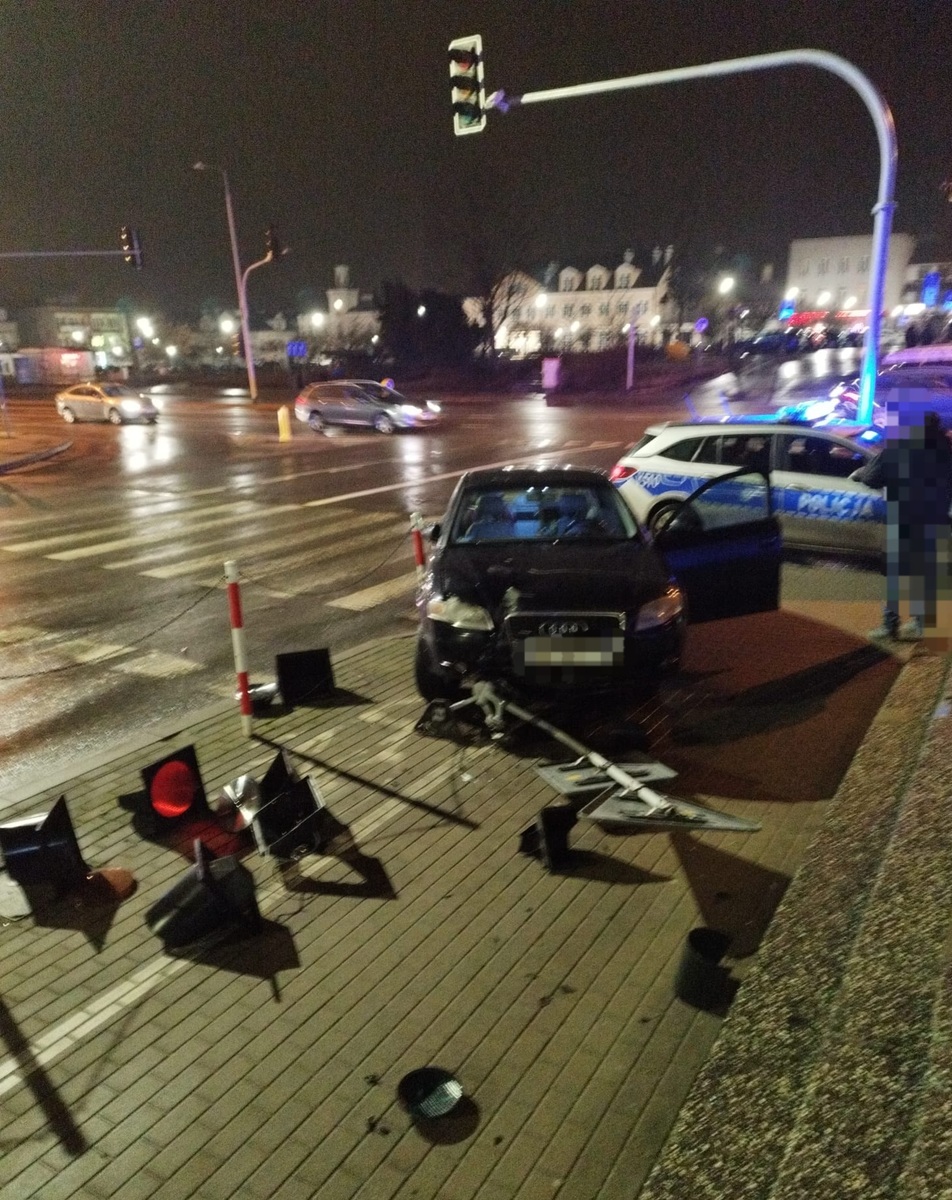 Wczoraj (23.01) około godz. 20.05 policjanci z Wydziału Ruchu Drogowego dokonali pomiaru prędkości, z jaką poruszał się kierowca audi. Urządzenie pomiarowe zarejestrowało wynik 122 km/h. Po wykonaniu pomiaru funkcjonariusze natychmiast wsiedli do radiowozu i pojechali za pojazdem. Zlekceważenie ograniczenia prędkości to nie jedyne przewinienie kierowcy. Mężczyzna na dwóch skrzyżowaniach nie zastosował się do czerwonego światła nadawanego przez sygnalizator, czym stworzył zagrożenie w ruchu drogowym. Ostatecznie podczas wykonywania manewru skrętu w lewo w ul. 11 Pułku Ułanów Legionowych stracił panowanie nad pojazdem, wjechał na chodnik i uderzył w sygnalizator, a następnie w znak drogowy. Na szczęście nikt w tym zdarzeniu nie odniósł obrażeń. Policjanci sprawdzili stan trzeźwości 35-letniego mieszkańca powiatu ciechanowskiego – mężczyzna był trzeźwy.