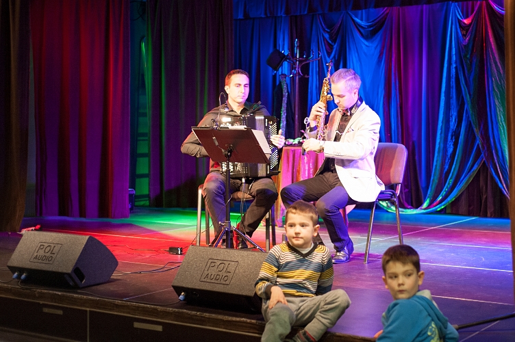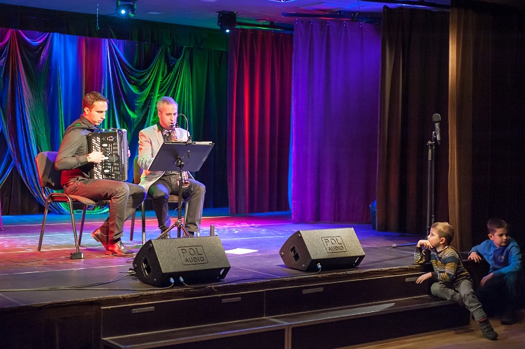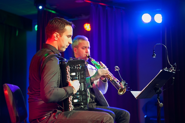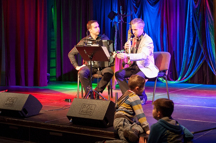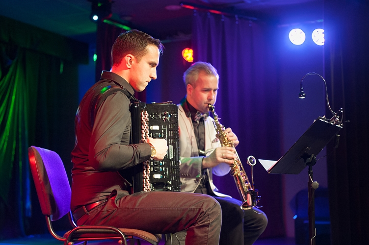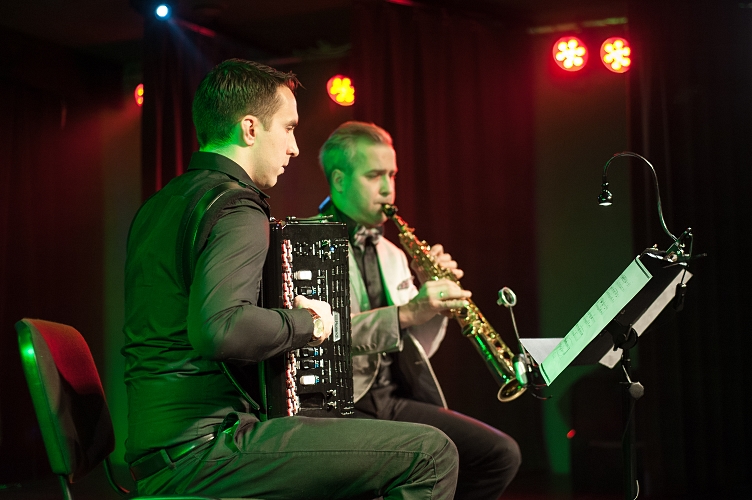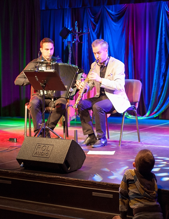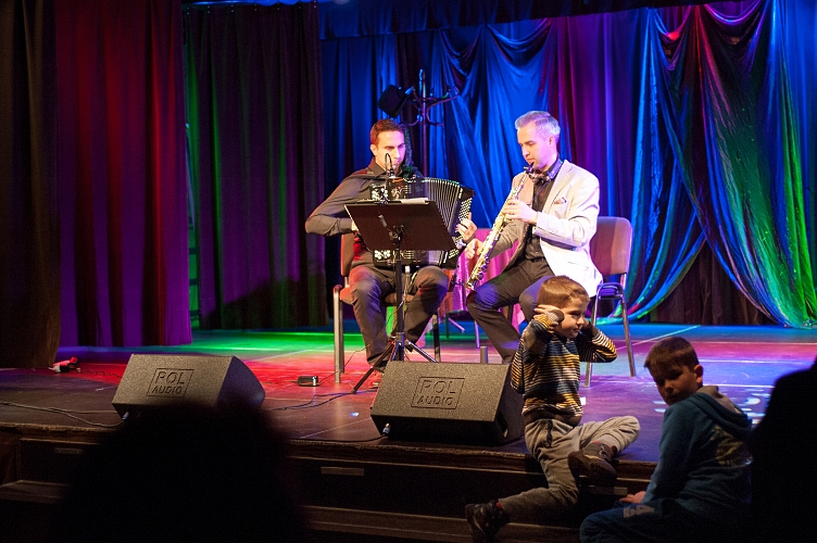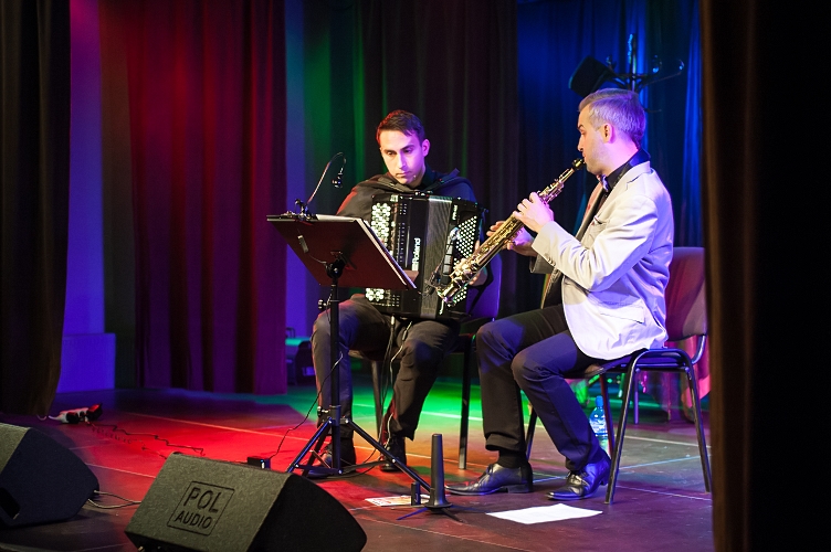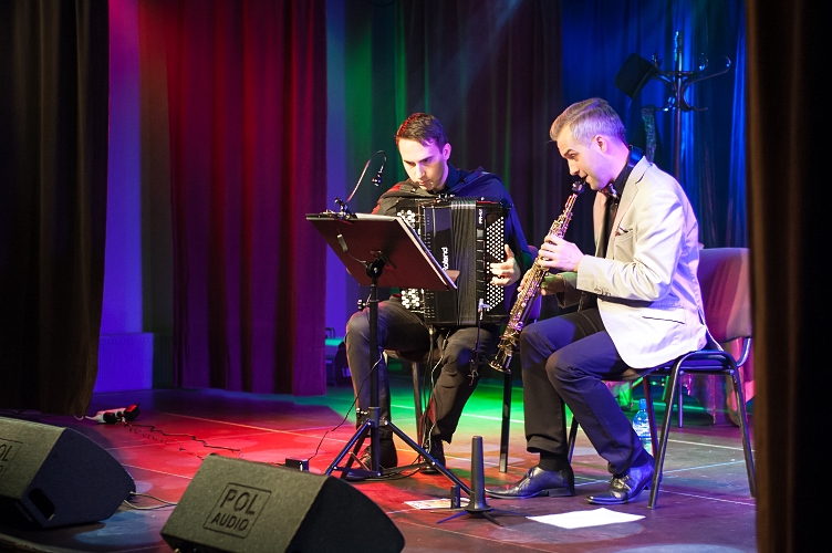Dopełnieniem wernisażu był koncert muzyki francuskiej na saksofon i akordeon zatytułowany ?Pod dachami Paryża?. Marcin Odyniec, wybitny saksofonista młodego pokolenia i Grzegorz Bożewicz, jeden z nielicznych wirtuozów bandoneonu w Polsce, a jednocześnie akordeonista, pianista, kompozytor i pedagog, zabrali publiczność w magiczną podróż uliczkami starego Paryża, nie szczędząc przy tym opowieści i ciekawostek dotyczących historii saksofonu i muzyki francuskiej. Nie mogło podczas koncertu zabraknąć instrumentalnych wersji największych przebojów Édith Piaf oraz znanego wszystkim utworu ?C’est si bon?.