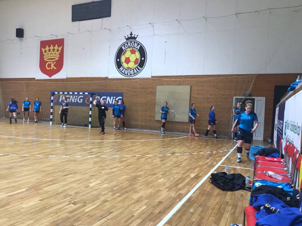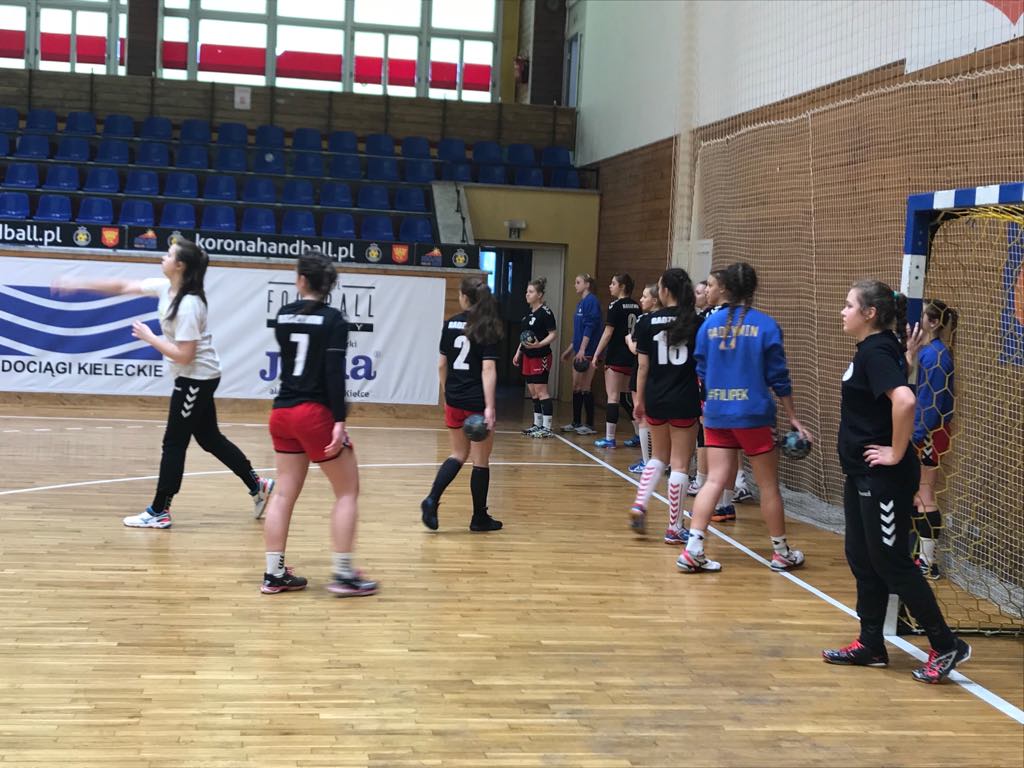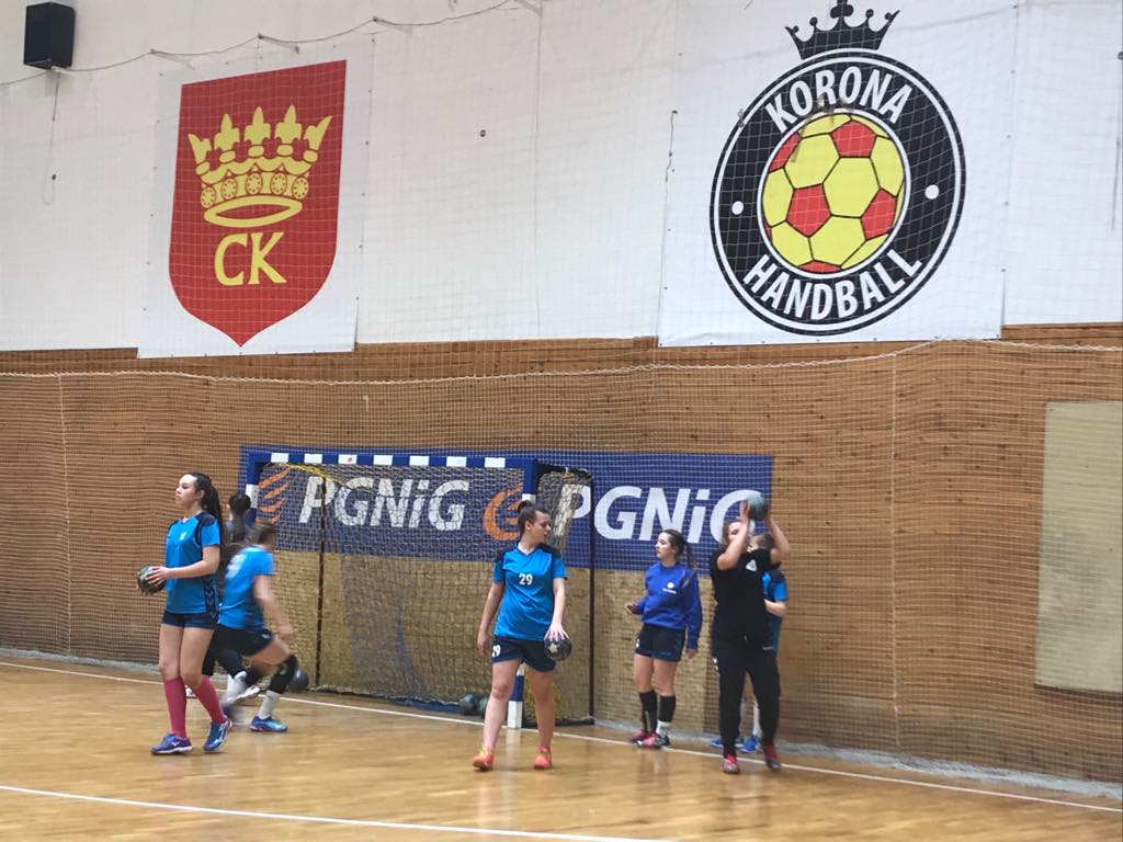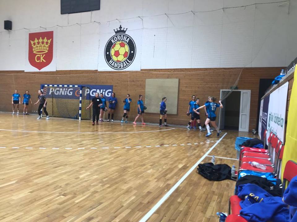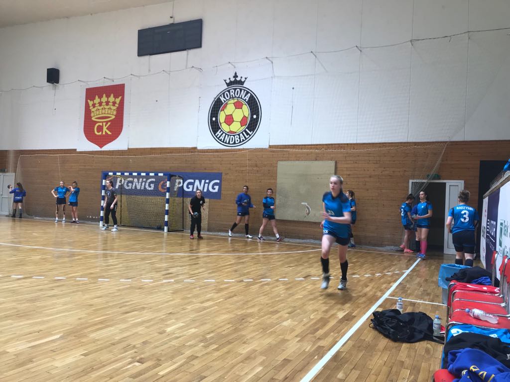W niedzielę zawodniczki KPR ?ROKiS? Radzymin rozegrały najtrudniejszy mecz z zespołem Korona Handball Kielce – gospodarzem turnieju. Pierwsza połowa meczu wyglądała bardzo obiecująco? 10:14 dla Radzymina. Kolejne 30 minut to bardzo wyrównana walka. Jednak w końcówce to zawodniczki z Kielc postawiły przysłowiową kropkę nad ?i?. Spotkanie zakończyło się wynikiem 26:23 dla Korona Handball Kielce. Wynik ten zamknął Radzyminiankom możliwość awansu do 1/4 Finału w tej kategorii.