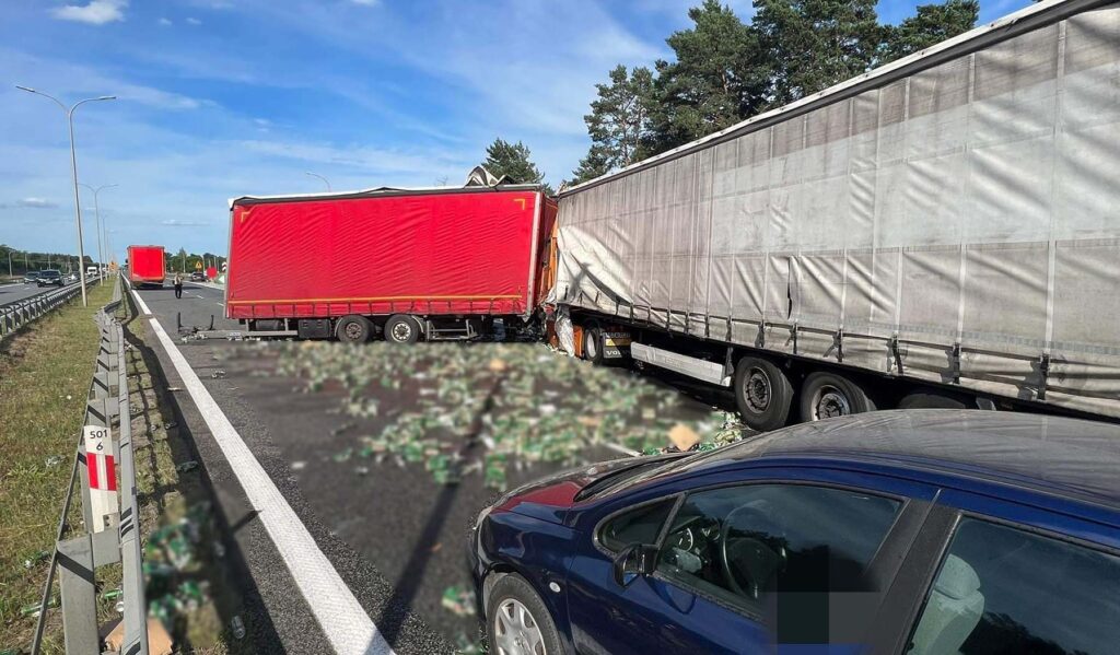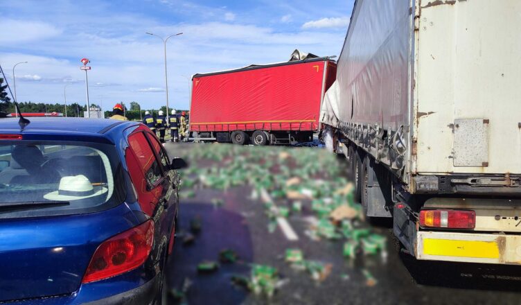 Po przybyciu na miejsce zdarzenia służby ustaliły, że doszło do zderzenia dwóch pojazdów ciężarowych, rozerwania naczepy jednego z nich i rozsypania przewożonego ładunku, który stanowiły puszki z piwem. Ponadto w zdarzeniu uszkodzone zostały dwa samochody osobowe, które w momencie uderzenia znajdowały się w bliskiej odległości.