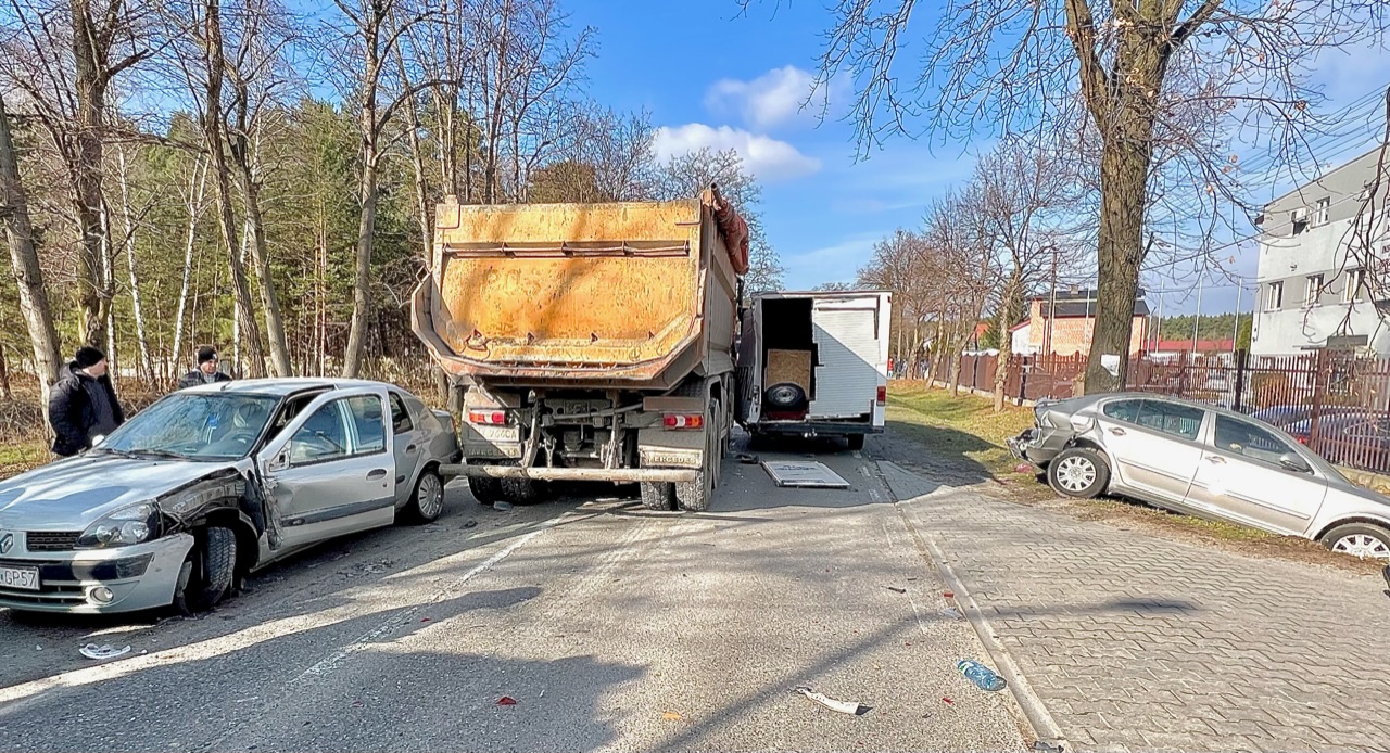 Doszło do mocnego uderzenia. Siłą rozpędu zaczęły wpadać na siebie kolejne samochody. Skoda Octawia wylądowała w rowie, a dostawczy bus oraz osobówka, którą podróżowało starsze małżeństwo, zatrzymały się, uszkodzone dopiero na poboczu.