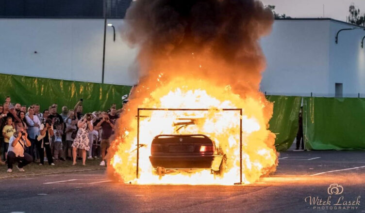 - PRZEJAZDY PRZEZ ŚCIANĘ OGNIA Z CZŁOWIEKIEM NA MASCE,