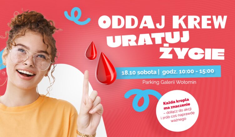 W sobotę 18 października wielka zbiórka krwi przy Galerii Wołomin pod hasłem „Oddaj krew, uratuj życie”. Wszyscy chętni, po zakwalifikowaniu przez lekarza, będą mogli zostać honorowymi dawcami. Krew potrzebna jest w całej Polsce, również w Wołominie i okolicach. To kolejna akcja Galerii Wołomin we współpracy z Klubem Honorowych Dawców Krwi PCK „Dar Serca”.