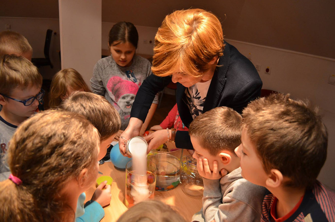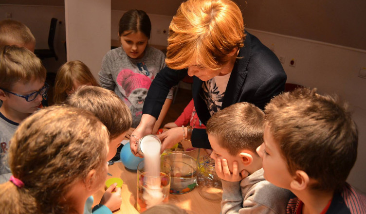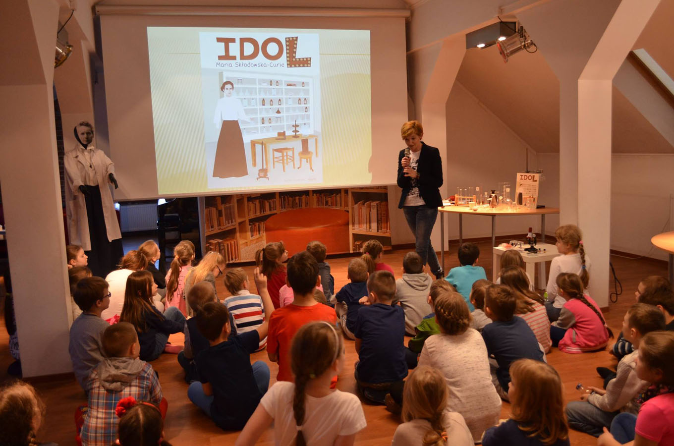 Maria Skłodowska-Curie, wpisuje się w tę definicje idealnie, kobieta niezwykła, matka, żona, wielka uczona, jako jedyna otrzymała dwie Nagrody Nobla w dziedzinie fizyki za prace nad promieniotwórczością oraz w dziedzinie chemii za odkrycie radu i polonu. To właśnie jej postać, stała się dla nas inspiracją do zorganizowania ?Bibliotecznego laboratorium?, spotkania, które w przystępny sposób, poprzez zabawę, przybliżyło fascynujący świat, jakim są nauki ścisłe. Mali eksperymentatorzy, mogli zobaczyć, jak wygląda i w co jest wyposażone laboratorium oraz wcielić się przez chwilę w wielkich naukowców i zgłębić tematykę wyporności, elektrostatyki czy sprawdzić jak produkuje się gaz przy użyciu octu i proszku do pieczenia. Dzięki współpracy z Archiwum Polskiej Akademii Nauk w Warszawie, nie lada atrakcją ?Bibliotecznego laboratorium? była wystawa o naszej noblistce, dodatkowo dzięki Prezes Towarzystwa Marii Skłodowskiej-Curie w Hołdzie, jedno z rodziców naszych małych naukowców, otrzymało w konkursie książkę pt. ?Maria Skłodowska-Curie. Autobiografia i wspomnienie o Piotrze Curie?. Być może wśród małych fizyków i chemików, którzy odwiedzili nas w piątkowy wieczór, znajdą się ci na miarę Marii i będą swoimi odkryciami zmieniać Świat. Specjalne podziękowania dla ZS nr 4 w Wołominie za użyczenie sprzętu laboratoryjnego.