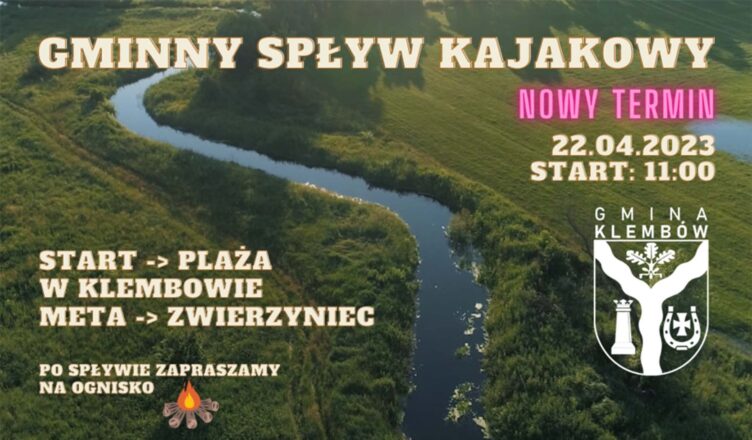 Spływ odbędzie się 22 kwietnia 2023 r., o godzinie 11:00. Poniżej zamieszczamy informacje organizacyjne: