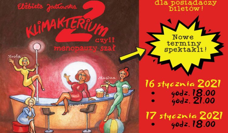 W związku z wprowadzeniem w całym kraju żółtej strefy i związanymi z tym restrykcjami, jesteśmy zmuszeni po praz kolejny przełożyć spektakl ?Klimakterium 2, czyli menopauzy szał?, który miał się obyć w MCER. – informują organizatorzy