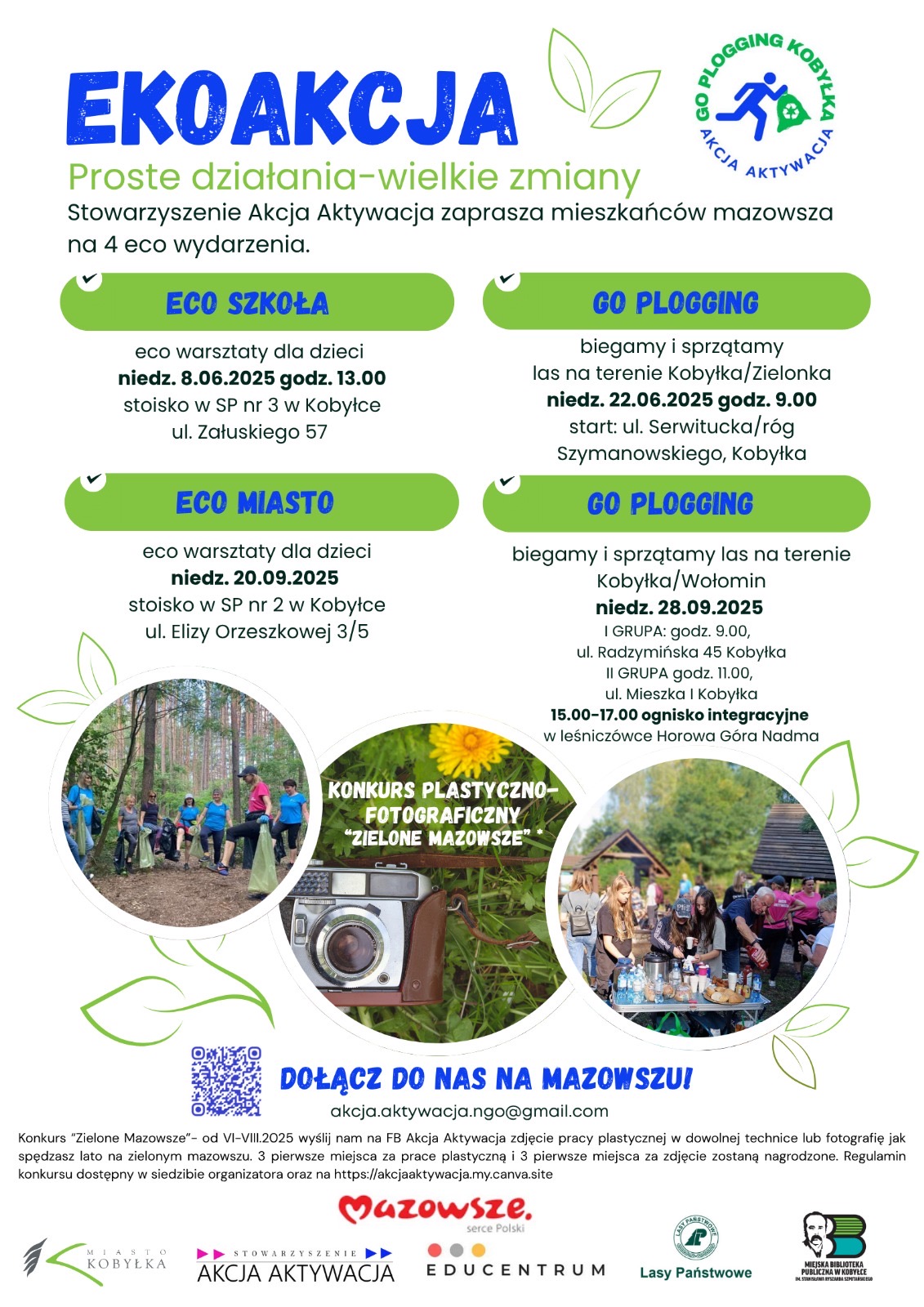 W ramach EKOAkcji odbędą się cztery wydarzenia, które łączą wiedzę o ochronie środowiska, zapobieganiu zmianom klimatycznym z działaniami lokalnej społeczności. Zostanie również ogłoszony konkurs plastyczno-fotograficzny dla dzieci i młodzieży pod hasłem: Zielone Mazowsze.