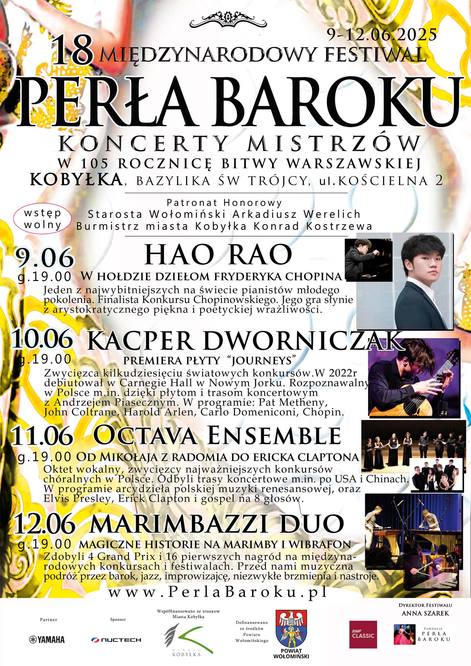 Międzynarodowy Festiwal Perła Baroku Koncerty Mistrzów należy do najważniejszych kulturalnych tradycji miasta Kobyłka i powiatu wołomińskiego. Jest radością tysięcy przybywających mieszkańców, którzy czekają na niego cały rok.