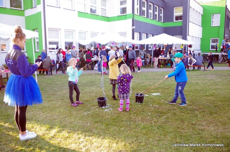 Różnorodny asortyment na licznych szkolnych stoiskach kusił oczy mieszkańców oraz zachęcał do zakupu i tym samym wsparcia klasowych budżetów. W menu znalazły się ciepłe przekąski, gorące i zimne napoje, słodycze i różnorodne ciasta. Na zakończenie wystąpił gościnnie Maciej Kuśmierz ? MACZO, który w rytm lubianych przebojów muzyki disco porwał publiczność do wspólnej zabawy.