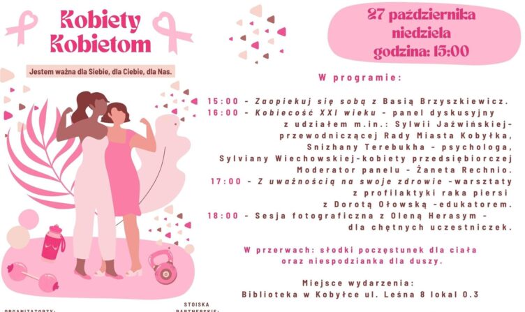 Kobyłka na obcasach, Stowarzyszenie Qźnia oraz Miasto Kobyłka zapraszają serdecznie na wyjątkowe wydarzenie: “Kobiety Kobietom: Jestem ważna dla Siebie, dla Ciebie, dla Nas”, które odbędzie się 27 października (niedziela) o godzinie 15:00.