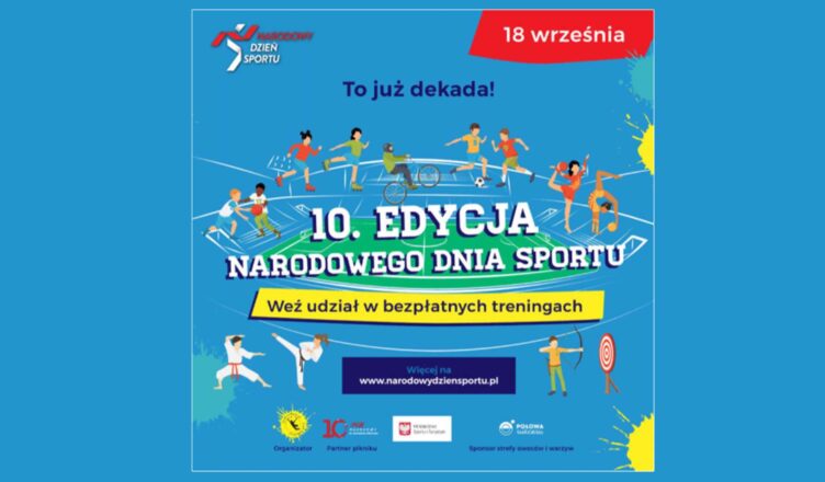 X edycja Narodowego Dnia Sportu odbędzie się 18 września 2022 r. (niedziela). W ramach obchodów w Kobyłce odbędzie się wspólny trening NORDIC WALKING razem z grupą Kijki z Kobyłki, który został objęty Patronatem Burmistrza Miasta Kobyłka.