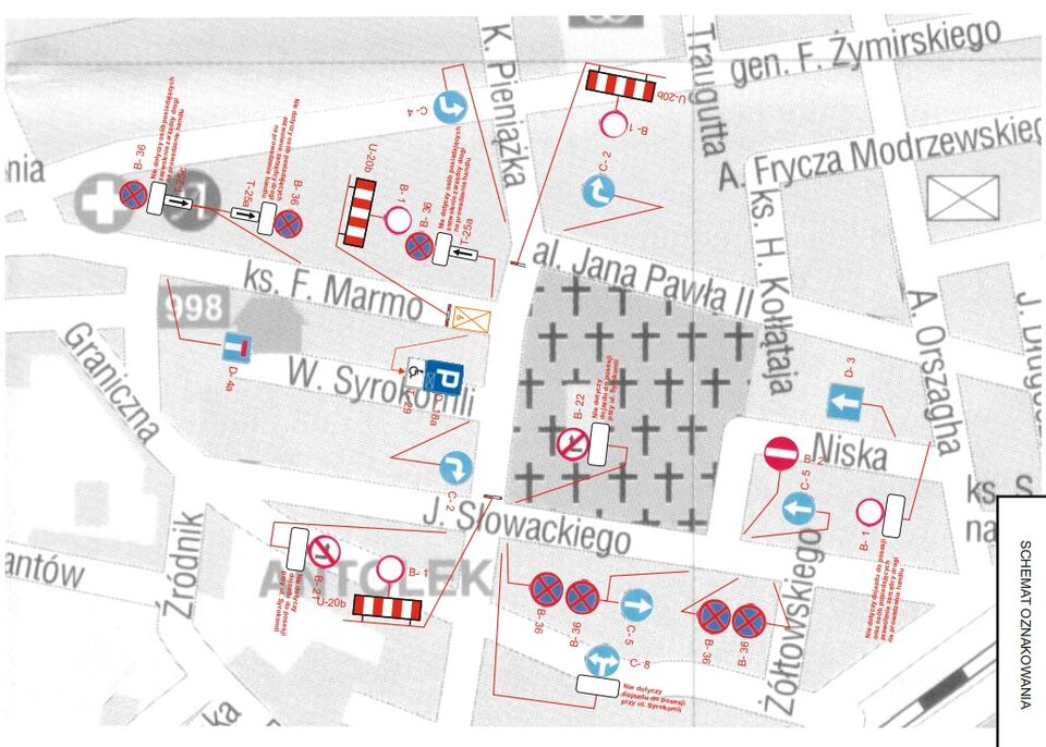 • Na ul. Niskiej wprowadzony zostaje zakaz ruchu z wyłączeniem mieszkańców i osób zajmujących się handlem.