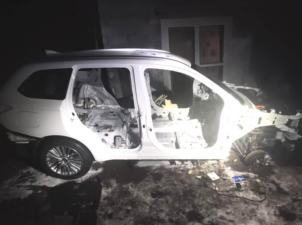 Policjanci ujawnili na terenie posesji jeszcze jeden częściowo zdemontowany na części pojazd. Białe Mitsubishi Outlander po odczytaniu numerów identyfikacyjnych i ich sprawdzeniu okazał się również skradziony kilka dni wcześniej na terenie Niemiec. Funkcjonariusze zabezpieczyli pojazdy i ich części na policyjnym parkingu.