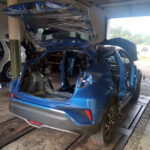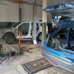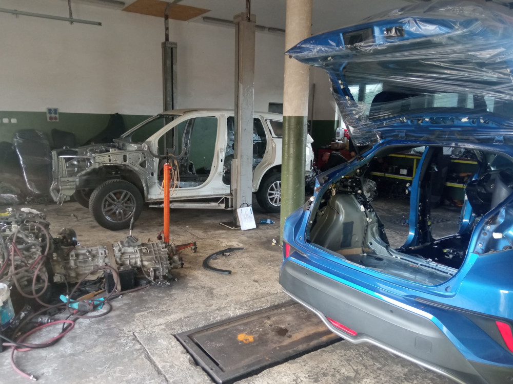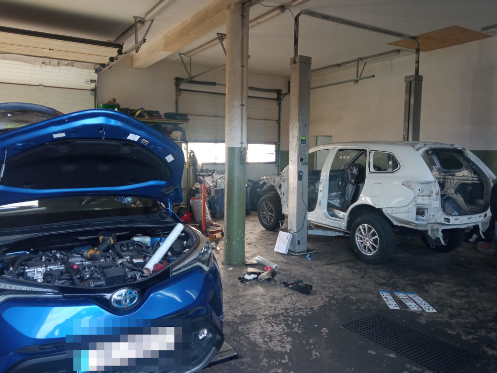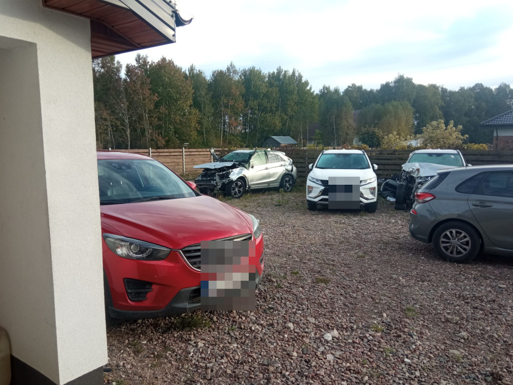 Funkcjonariusze pojawili się na miejscu w momencie, kiedy w garażu dwóch mężczyzn demontowało Toyotę CH-R. Samochód miał już zdjęte drzwi oraz brakowało wyposażenia we wnętrzu auta. Tablice rejestracyjne, które widniały na toyocie, miały widoczne ślady podrabiania i przerabiania. W trakcie dalszych czynności na terenie posesji policjanci odnaleźli też Hyundaia Tucsona, on również posiadał podrobione tablice rejestracyjne. Oba samochody, jak wcześniej ustalili funkcjonariusze, zostały skradzione na terenie Niemiec. 54-latek i jego kolega zostali zatrzymani.