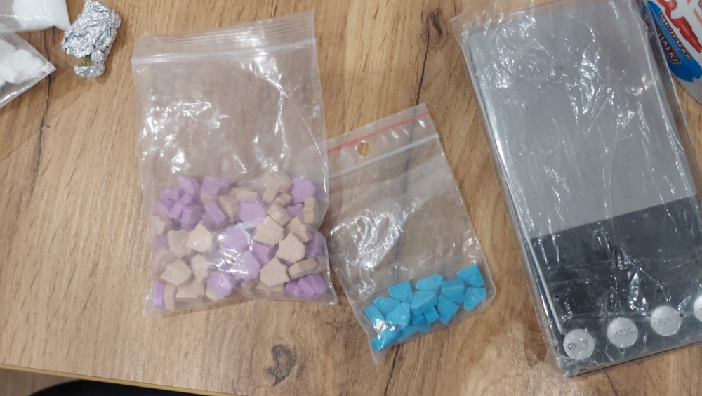W trakcie przeszukania pomieszczeń, które zajmował, funkcjonariusze ujawnili i zabezpieczyli ponad 600 gramów środków odurzających w postaci marihuany, kokainy oraz 91 tabletek ekstazy. W trakcie dalszych czynności znaleźli również telefony komórkowe, karty telefoniczne, wagę elektroniczną oraz pieniądze w kwocie blisko 20 tysięcy złotych, które zabezpieczyli na poczet przyszłych kar. W działaniach uczestniczył również pies służbowy wyspecjalizowany w wykrywaniu zapachów narkotykowych.