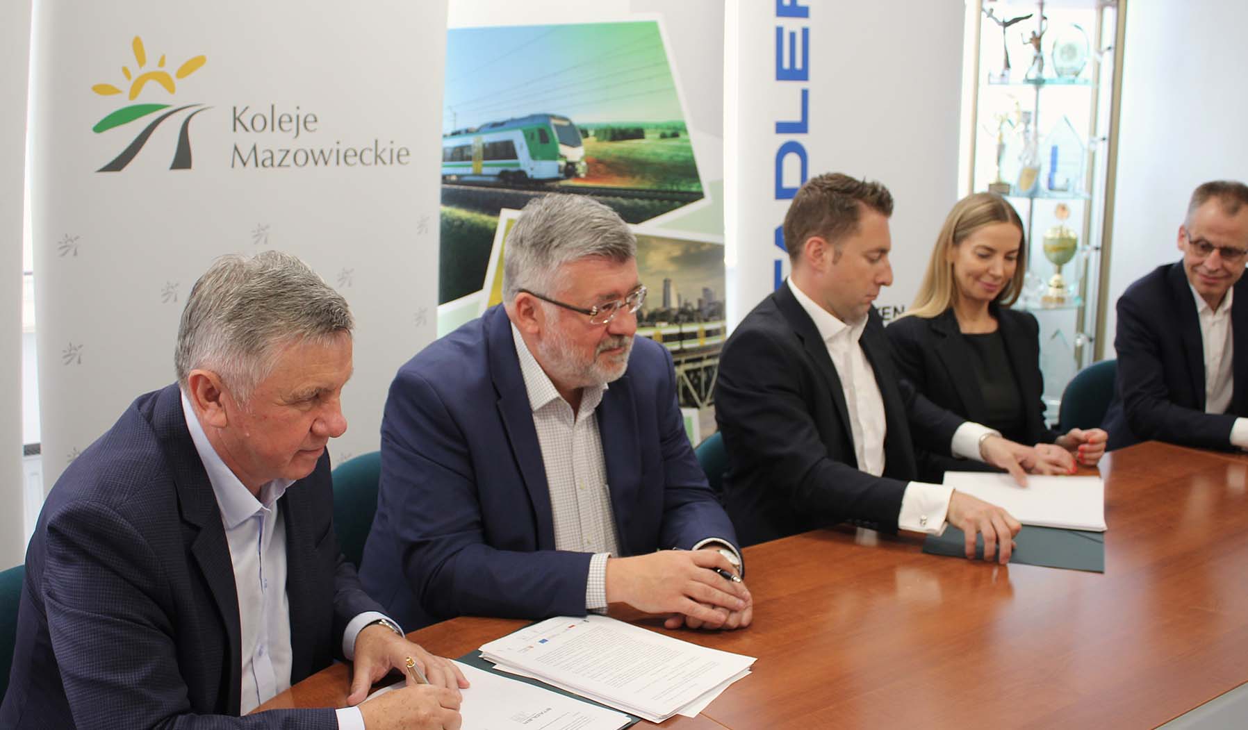 Umowa na dostawy łącznie 25 pojazdów FLIRT najnowszej generacji wraz z usługą ich 18-letniego utrzymania została podpisana dzisiaj w Warszawie przez przedstawicieli zarządu Kolei Mazowieckich: Roberta Stępnia i Czesława Sulimę oraz przedstawicieli zarządu Stadlera: Philippa Brunnera oraz Arkadiusza Świerkota. Jej zawarcie było możliwe dzięki uzyskaniu funduszy unijnych – spółka otrzymała dofinansowanie w wysokości 242 618 065,50 zł z programu Fundusze Europejskie dla Mazowsza 2021-2027 na zakup 15 pociągów elektrycznych oraz