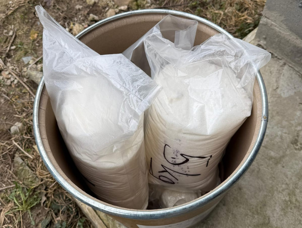 Funkcjonariusze przeszukali również dom 55-latka pod Płońskiem. Znaleźli tam jeszcze więcej narkotyków. Było to 41 kilogramów białej substancji. Wstępne ustalenia wskazują, że jest to prawdopodobnie mefedron we wczesnym stadium produkcji. W domu znaleziono również 137 waporyzatorów z zawartością THC oraz 40 litrów płynnych odczynników chemicznych, mogących służyć do produkcji narkotyków.