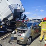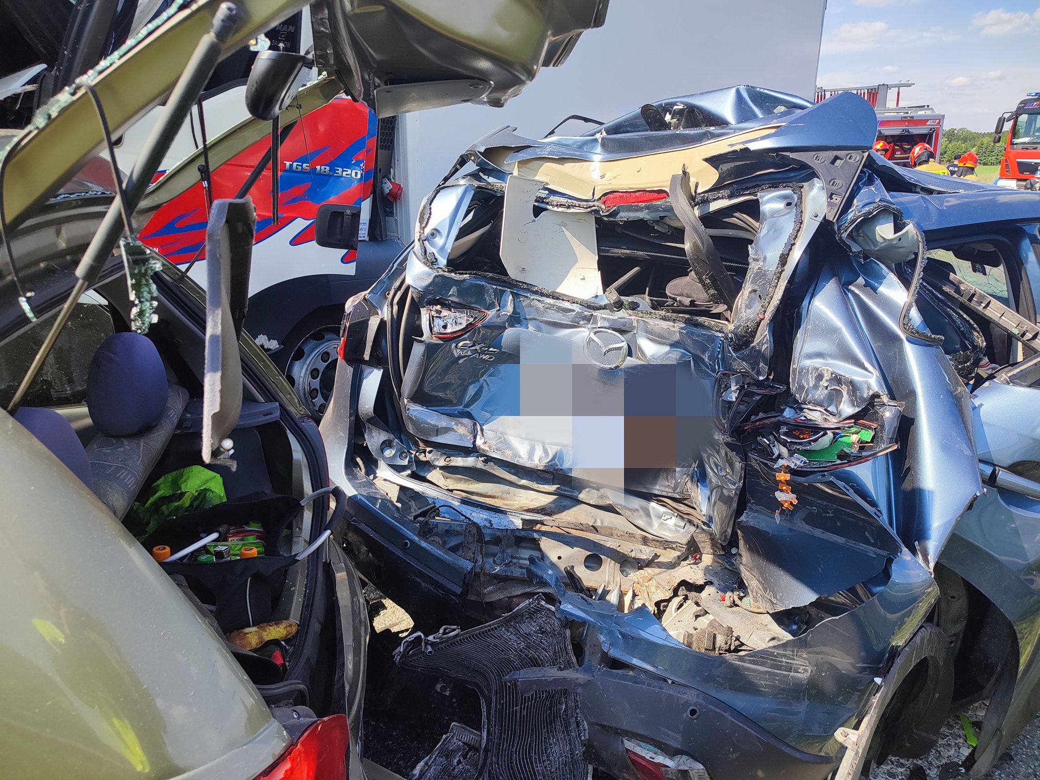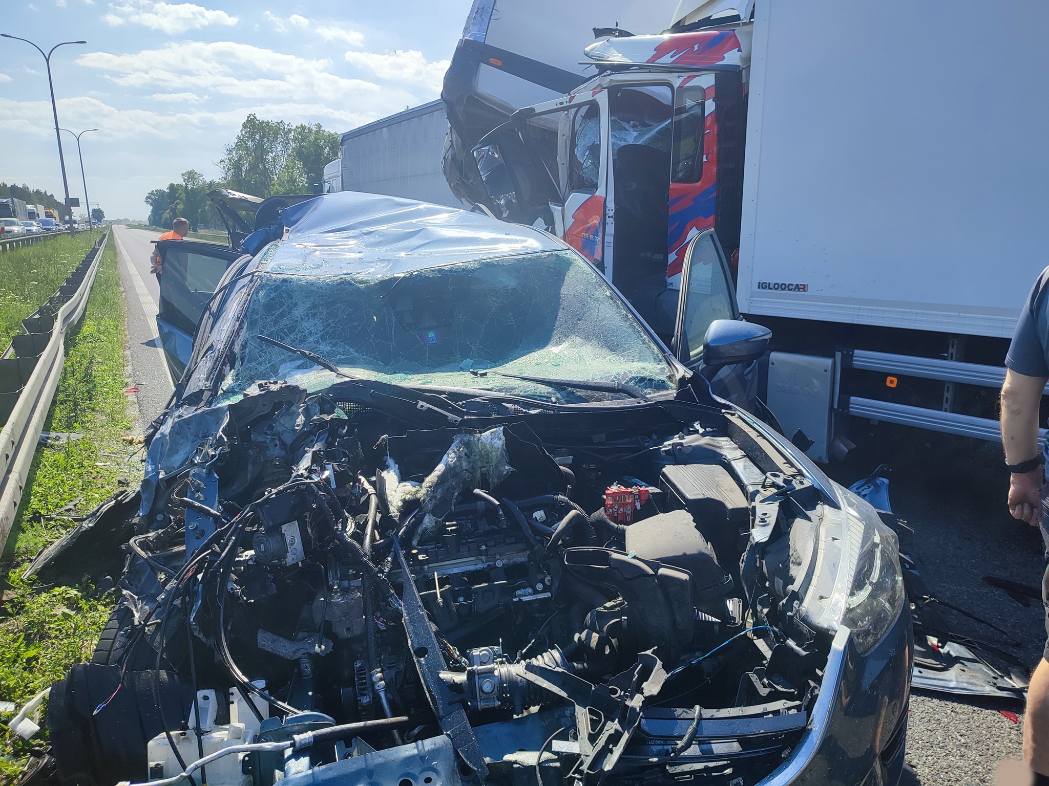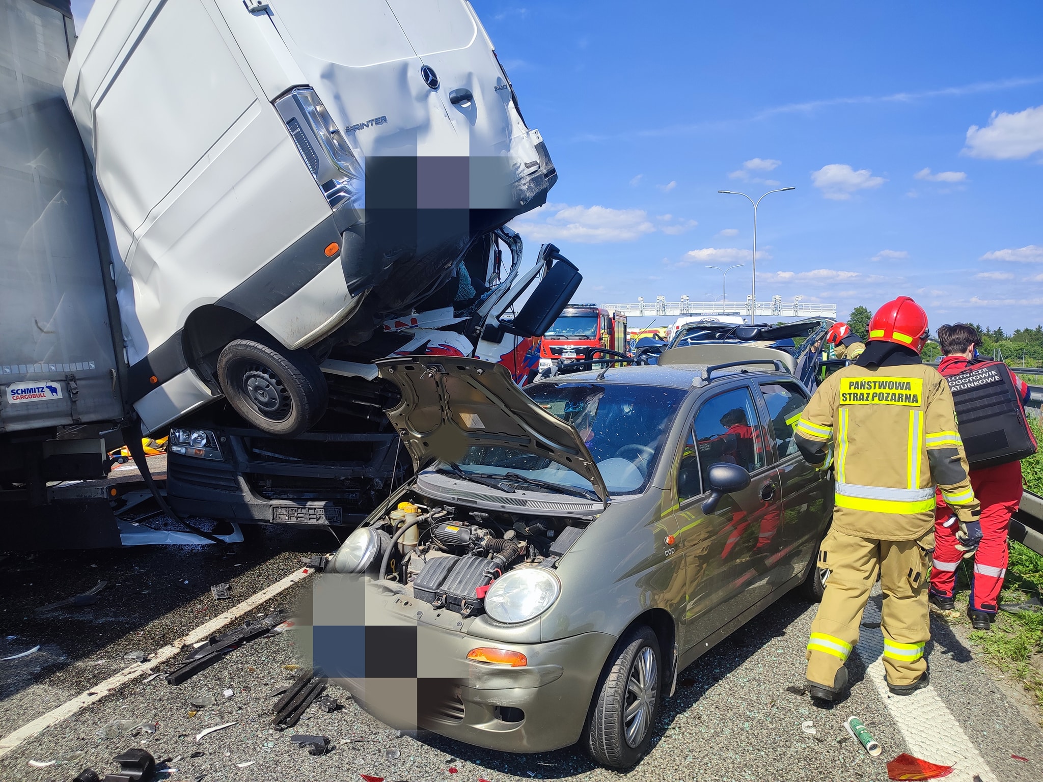 Do koszmarnego karambolu na trasie S8 doszło w poniedziałek w Niegowie. Do szpitala zostało przewiezionych troje poszkodowanych: kierowca i pasażer busa oraz kierujący mazdą.