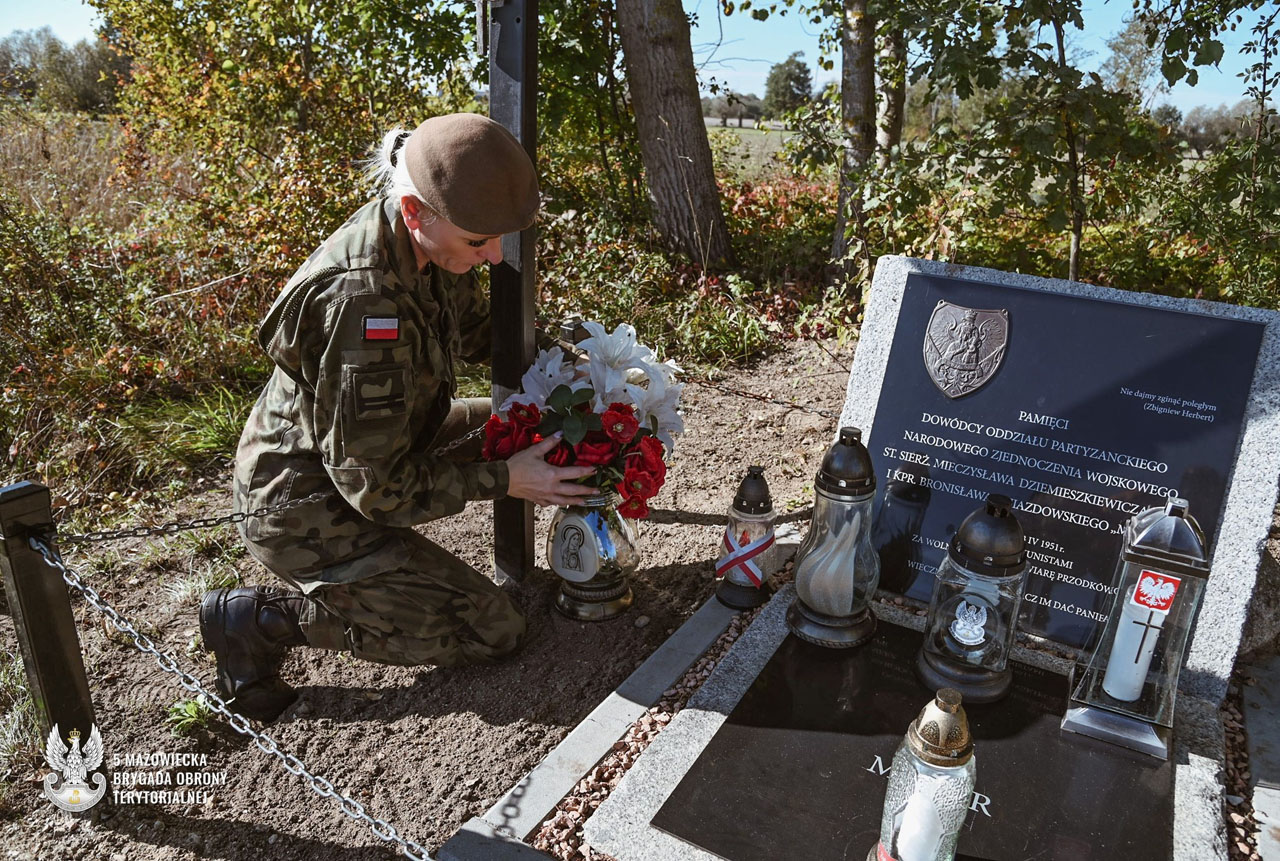 Zbliżający się dzień Wszystkich Świętych, to czas szczególnych wspomnień o tych, których nie ma już wśród nas. Dlatego, jak co roku żołnierze 5 Mazowieckiej Brygady Obrony Terytorialnej przystąpili do akcji „Żołnierska Pamięć”. Terytorialsi ze wszystkich batalionów Brygady – z Ciechanowa, Komorowa, Siedlec i Zegrza Południowego ruszyli w różne rejony północnego Mazowsza, by uporządkować mogiły i miejsca pamięci, zapalić znicze i w wyjątkowy – żołnierski sposób – oddać hołd swoim kolegom, żołnierzom Armii Krajowej, kombatantom i weteranom wojennym.