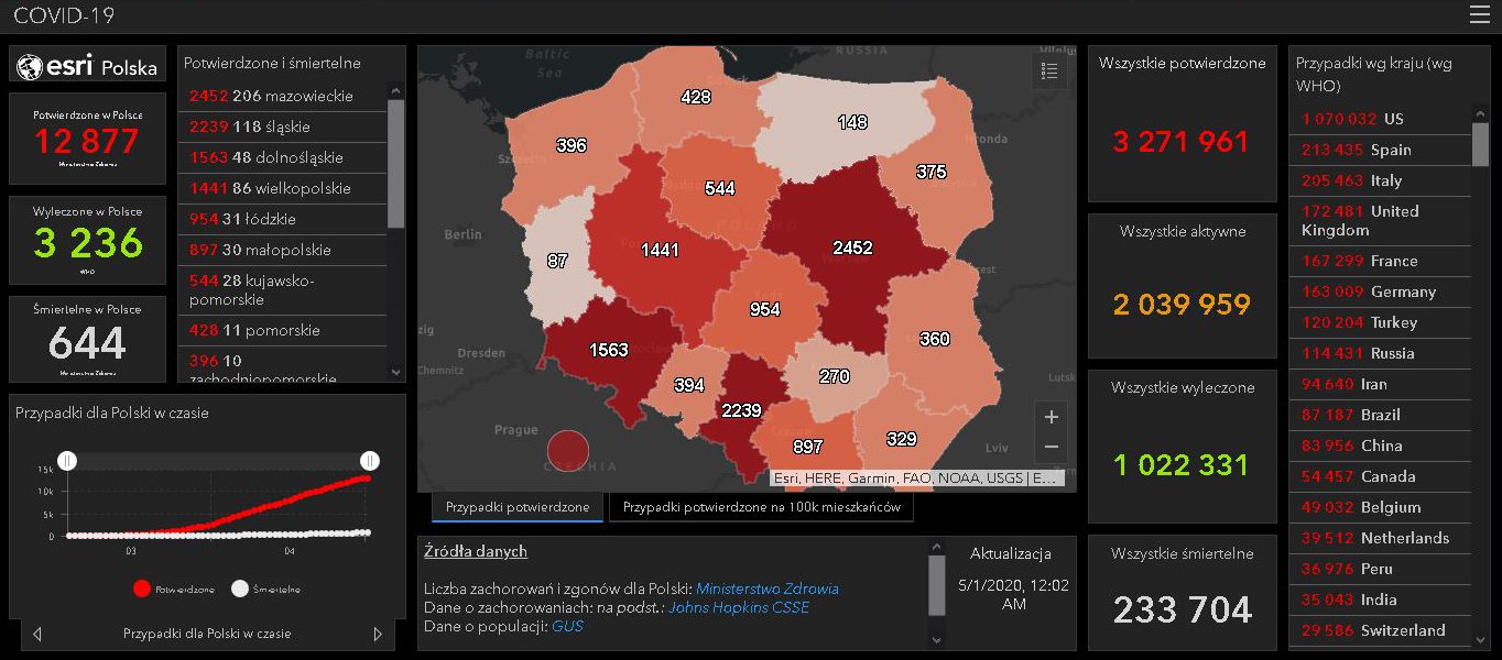 Stan danych w powiecie na godzinę 13.00 w dniu 01.05.2020r. (* Wszystkie nowe dane, które spłyną po tej godzinie prezentowane są w meldunku następnego dnia).