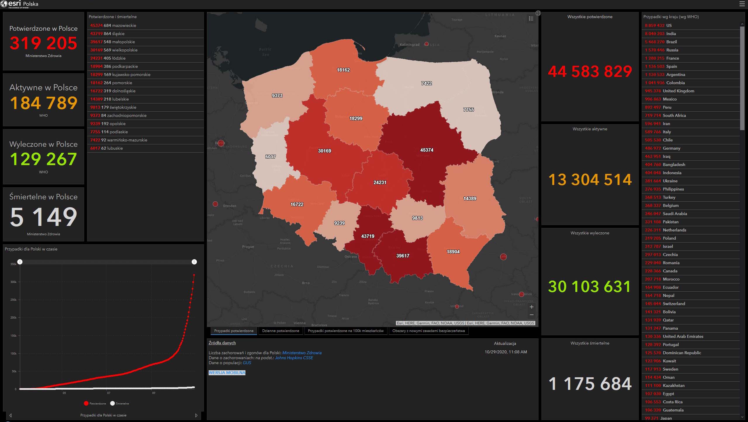 Stan danych w powiecie na godzinę 13.00 w dniu 29.10.2020r. (* Wszystkie nowe dane, które spłyną po tej godzinie prezentowane są w meldunku następnego dnia).