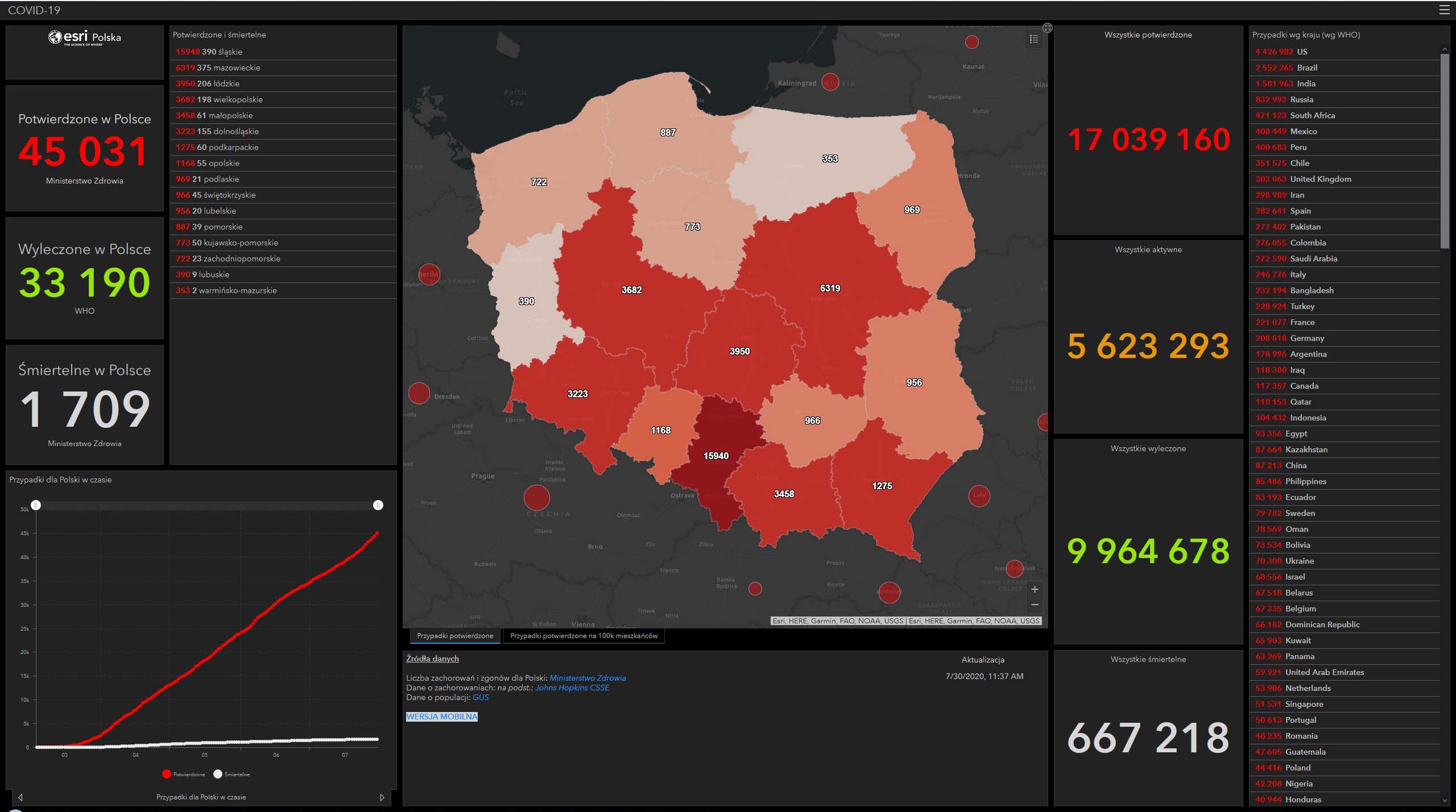 Stan danych w powiecie na godzinę 13.00 w dniu 30.07.2020r. (* Wszystkie nowe dane, które spłyną po tej godzinie prezentowane są w meldunku następnego dnia).