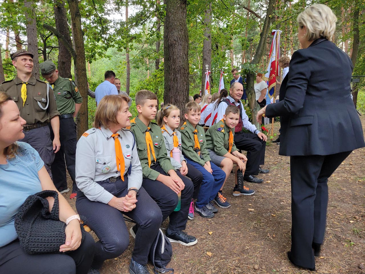Po części oficjalnej wykonano wspólne zdjęcie z Panią Burmistrz, która w serdecznych słowach podziękowała zuchom, harcerzom i instruktorom za piękną, pełną szacunku postawę patriotyczną.