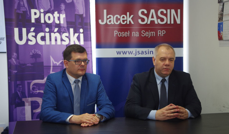 Konferencja prasowa posłów PiS: Jacka Sasina i Piotra Uścińskiego, dotycząca Konsultacji Metropolii Warszawskiej