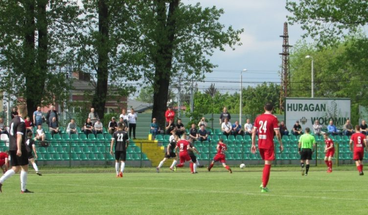 Zdaję sobie sprawę, że wstęp był bardzo obszerny i dla wielu z Was trudny do przebrnięcia, ale nie było to działanie do końca przypadkowe. Możecie mi wierzyć, że chciałbym równie wiele napisać o samym meczu, ale niestety nie jestem w stanie. Już w drugiej jego minucie miała miejsce sytuacja, która jak sądzę poważnie wpłynęła na przebieg późniejszych boiskowych wydarzeń. Szarżujący w polu karnym pomocnik gospodarzy Mariusz Marczak bezpardonowo sfaulował wychodzącego do piłki Mateusza Matrackiego. Obaj zawodnicy wymagali kilkuminutowej pomocy lekarskiej, ale brak zdecydowanej reakcji sędziego na tak ostre zagranie sprawił, że pozostałe osiemdziesiąt osiem minut rywalizacji było bardzo nerwowe, pełne prostych strat, nacechowane z obu stron agresją i ogólnie trudne do oglądania. Prowadzenie gospodarzom dała akacja przeprowadzona w 21 minucie przez podającego prostopadle Marczaka i zbiegającego z prawego skrzydła Marcina Figla, który delikatną podcinką minął Matrackiego i skierował piłkę do pustej bramki. Nasi zawodnicy przez długie fragmenty tej części meczu nie byli w stanie stworzyć realnego zagrożenia pod bramką gospodarzy, ale w ostatnich kilku minutach zepchnęli Huragan do głębokiej defensywy. Niestety w tym czasie niecelnie strzelali Damian Świerblewski, po szybko rozegranym rzucie wolnym i uderzający z linii pola karnego Barzyc, a dośrodkowanie Cezarego Nowińskiego z rzutu rożnego po rykoszecie trafiło w słupek.