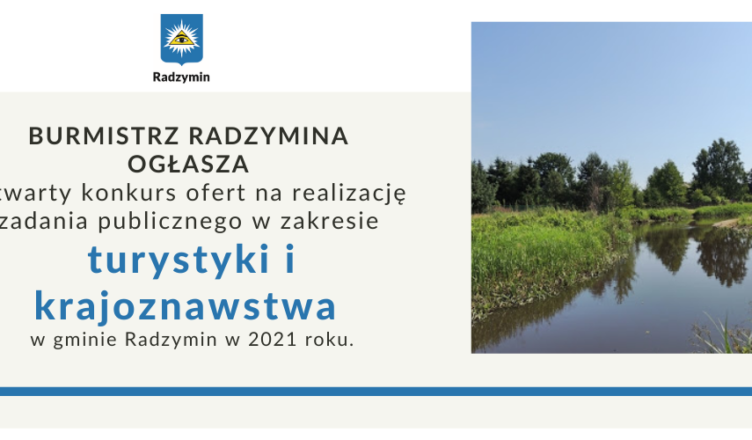 Burmistrz Radzymina ogłasza otwarty konkurs ofert na realizację zadania publicznego w zakresie turystyki i krajoznawstwa w gminie Radzymin w 2021 rok.