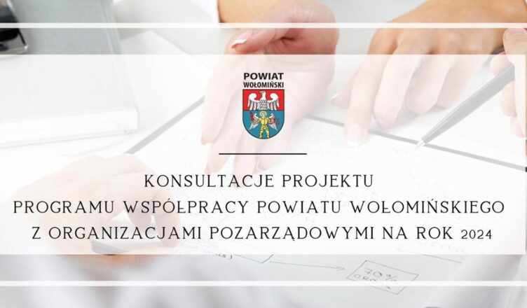 Zarząd Powiatu Wołomińskiego zaprasza mieszkańców powiatu wołomińskiego oraz organizacje pozarządowe działające na terenie powiatu do wzięcia udziału w konsultacjach społecznych w sprawie „Programu współpracy Powiatu Wołomińskiego z organizacjami pozarządowymi oraz podmiotami wymienionymi w art. 3 ust. 3 ustawy o działalności pożytku publicznego i o wolontariacie na rok 2024”.