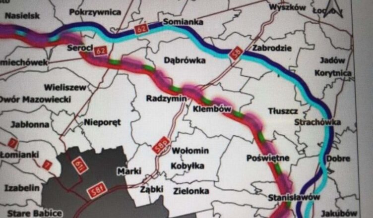 Kilkanaście miesięcy temu zaprezentowano IV warianty przebiegu trasy wokół Warszawy – II z IV wariantów przebiegają przez teren Gminy Radzymin. Ze wstępnych analiz przeprowadzonych przez GDDKiA preferowane warianty to wariant I (czerwony) i III (zielony), a właśnie w tych opcjach oś korytarza przebiega przez sołectwa: Emilianów, Zwierzyniec, Zawady, Łosie, Nowe Załubice, Arciechów.