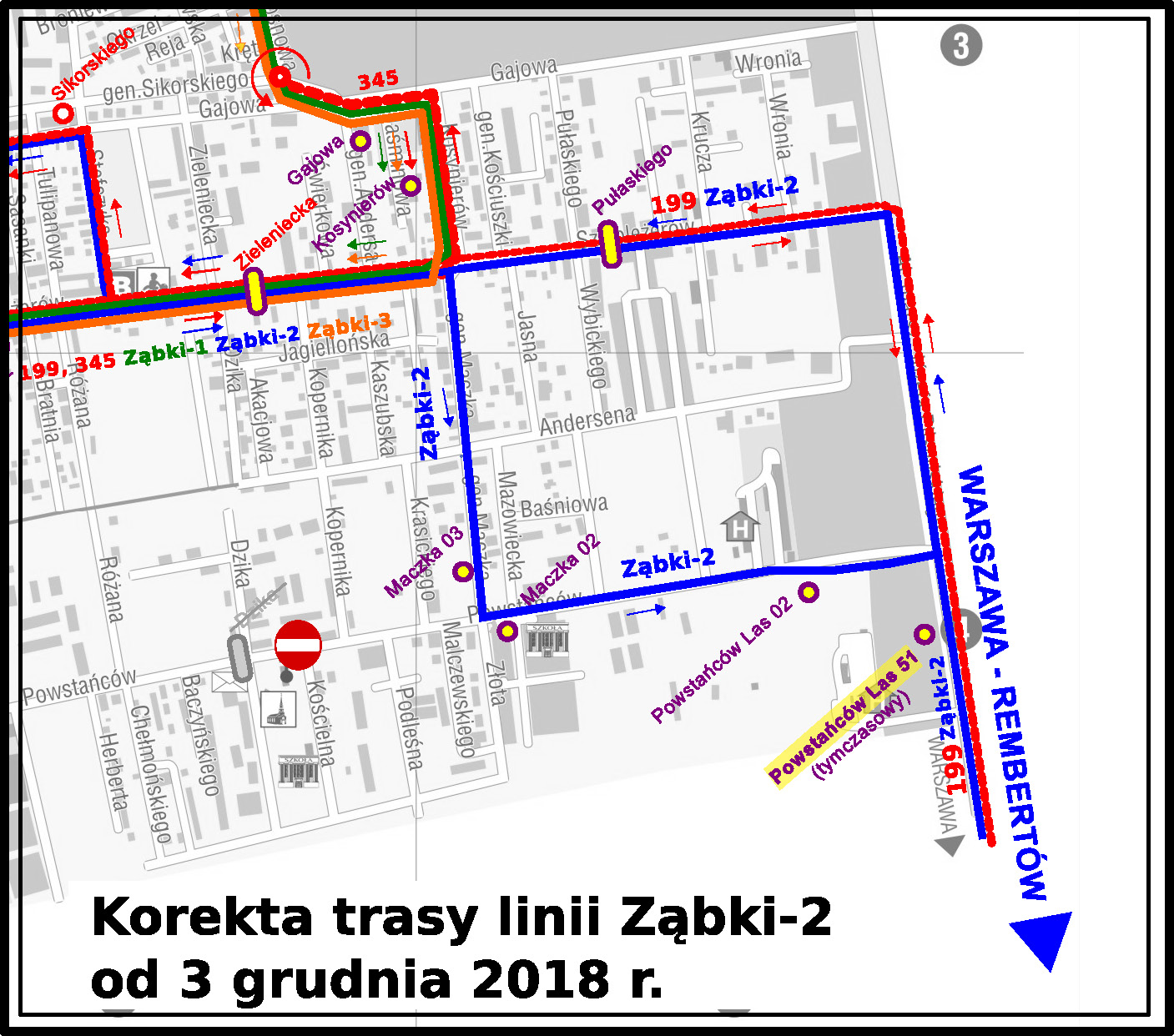 Od dnia 3 grudnia (poniedziałek) zostaje skorygowana trasa linii Ząbki-2 w kierunku Rembertów Ratusz.