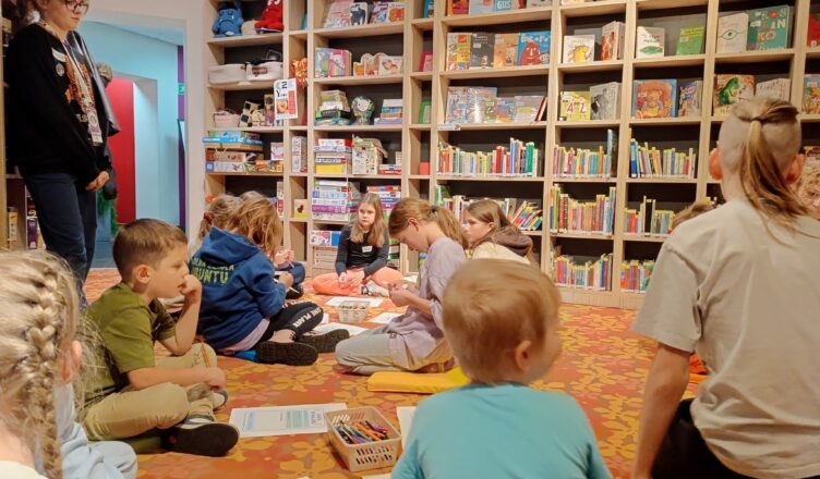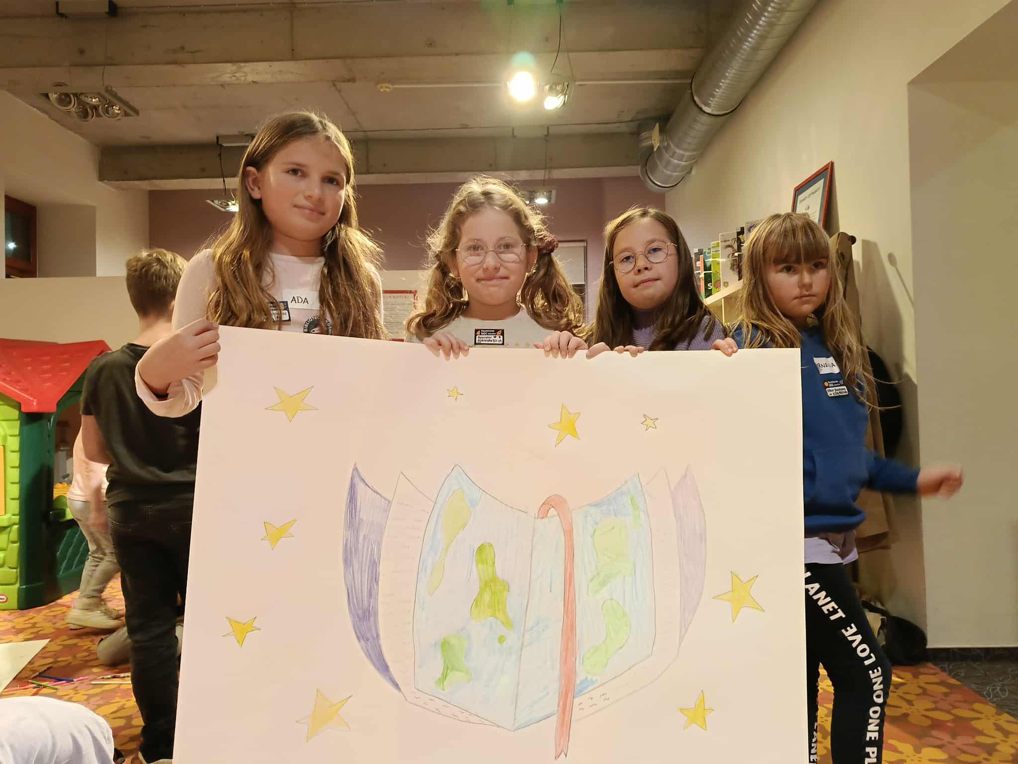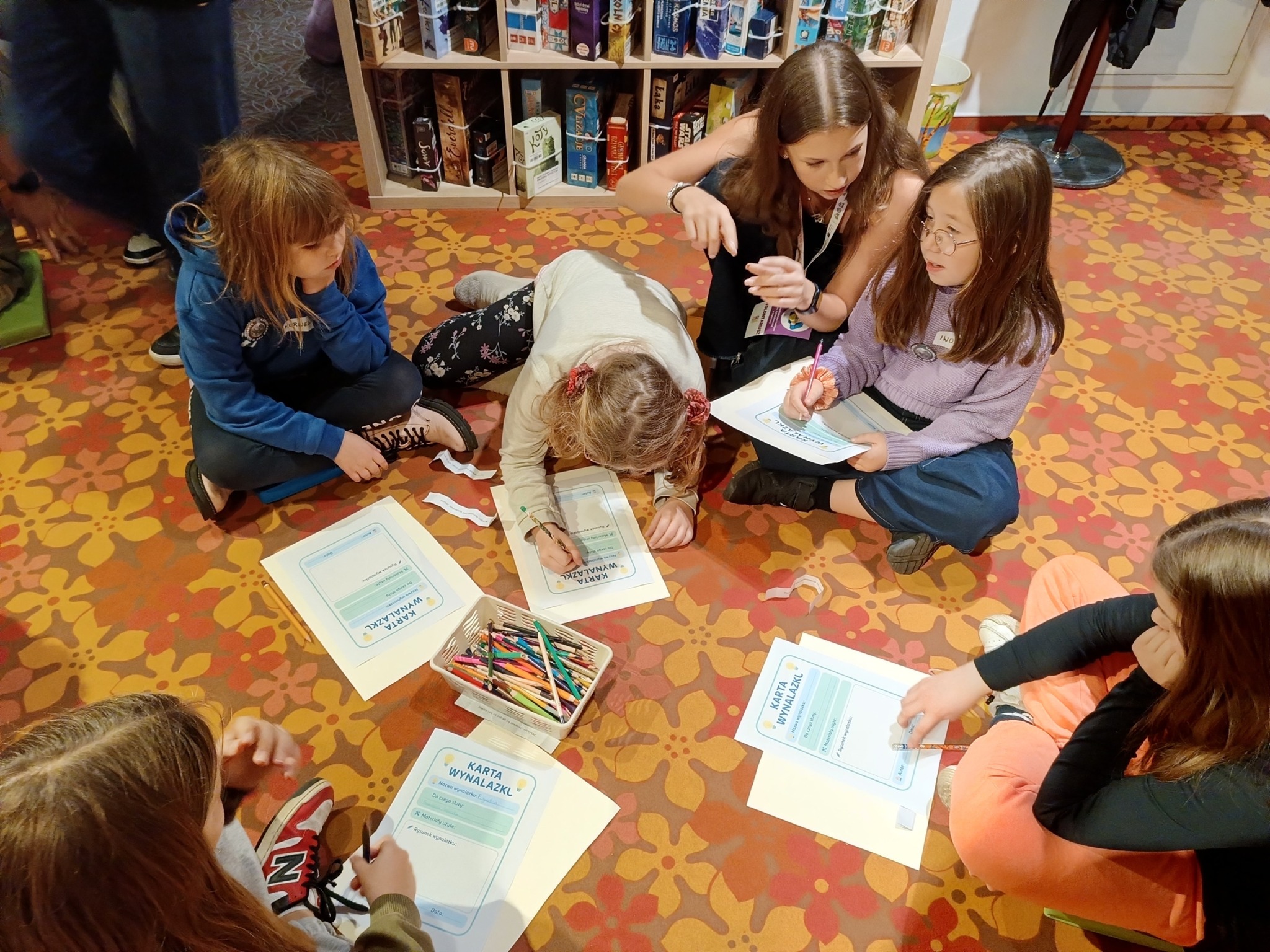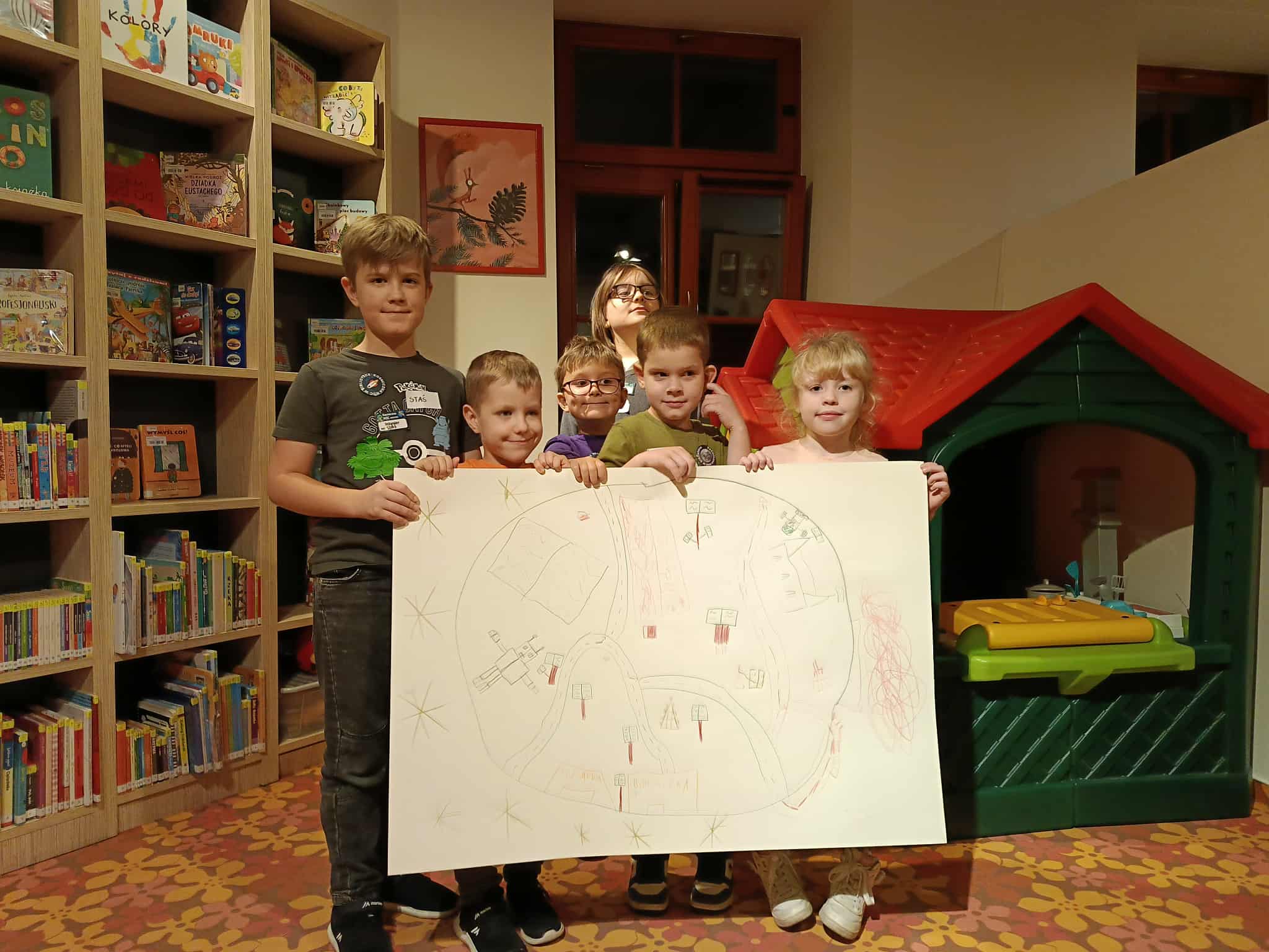 Podczas Bibliotecznej Fabryki Wynalazków dzieci zamieniły się w prawdziwych wynalazców! Było twórczo, wesoło i bardzo pomysłowo – a każda prezentacja wynalazku kończyła się gromkimi brawami! Później biblioteka zmieniła się w statek kosmiczny, a uczestnicy – w astronautów na misji odnalezienia tajemniczej planety Książkonia. Na kolejnych „planetach” czekały na nich zagadki logiczne, szyfry, quizy książkowe, a finałem było wspólne rysowanie odkrytej planety. Emocje sięgały gwiazd!