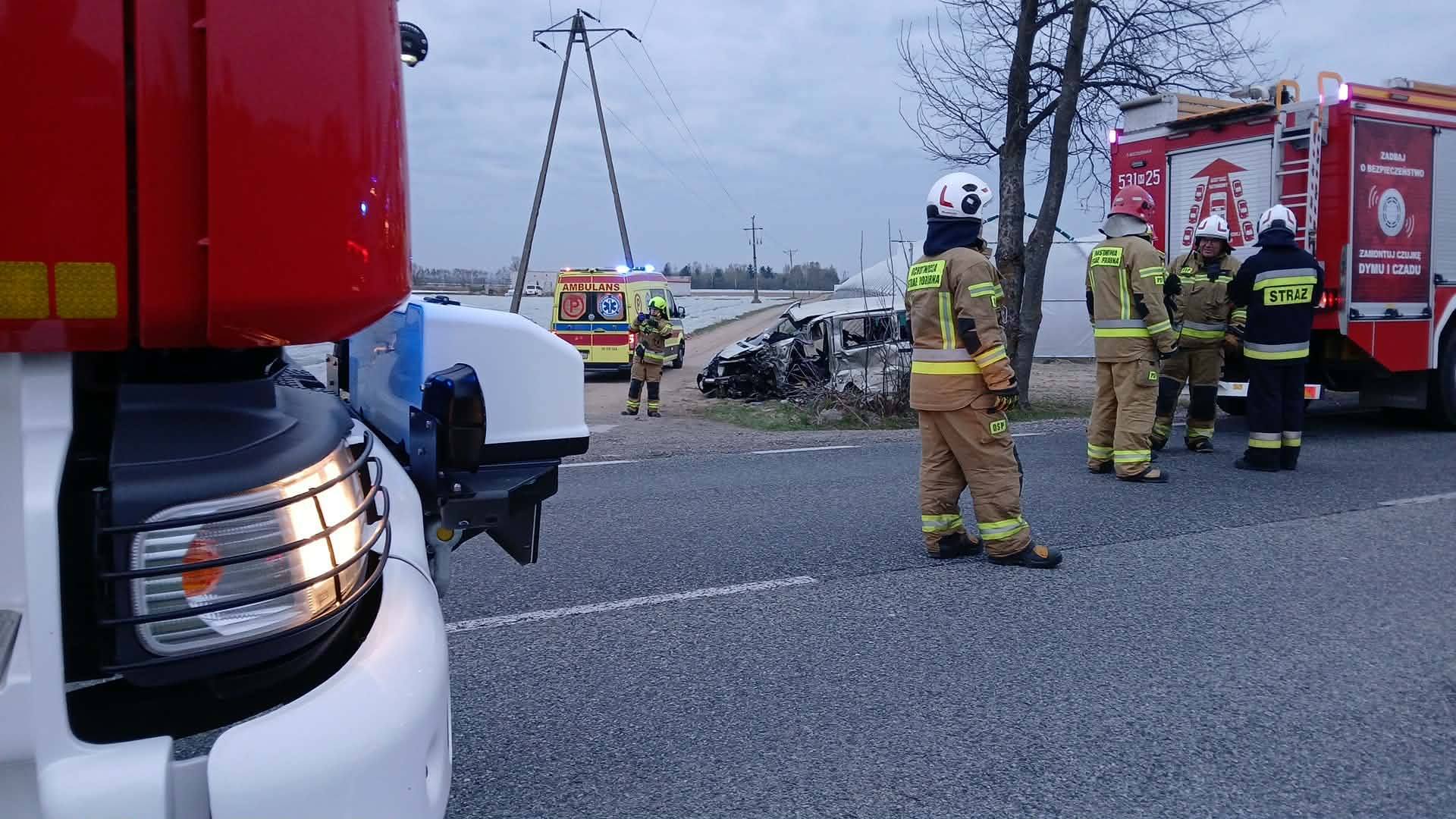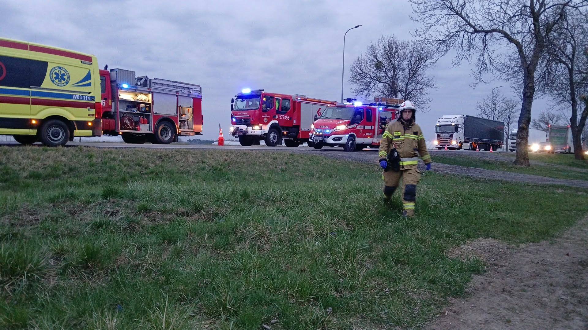 Do bardzo groźnego wypadku doszło w sobotę (11.04) nad ranem na drodze krajowej nr 62 w miejscowości Wygoda Smoszewska, na terenie gminy Zakroczym. W zdarzeniu uczestniczyły trzy pojazdy – samochód ciężarowy oraz dwa auta osobowe. Skala zniszczeń i liczba poszkodowanych sprawiły, że na miejsce skierowano liczne siły ratunkowe, w tym śmigłowiec Lotnicze Pogotowie Ratunkowe.