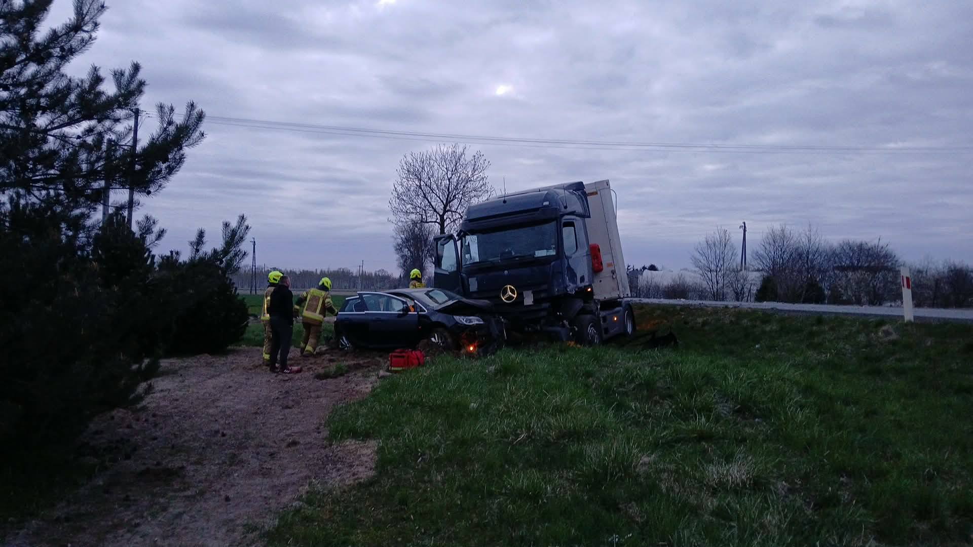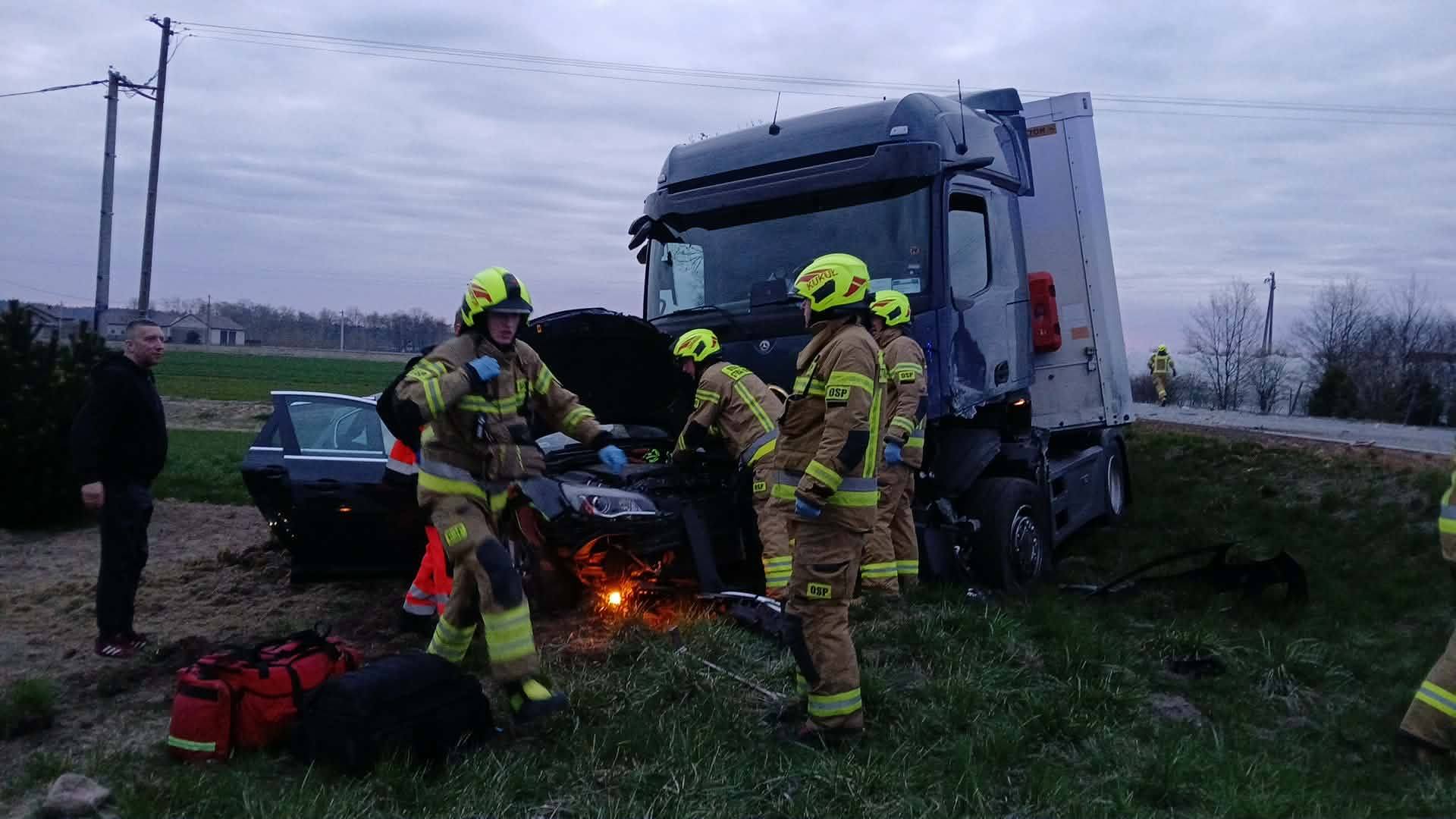 To jednak nie był koniec dramatu – chwilę później w uszkodzony pojazd osobowy uderzył nadjeżdżający samochód ciężarowy. Siła uderzenia była ogromna, a pojazdy zostały poważnie zniszczone, co doskonale obrazuje sytuację zastaną przez służby na miejscu.