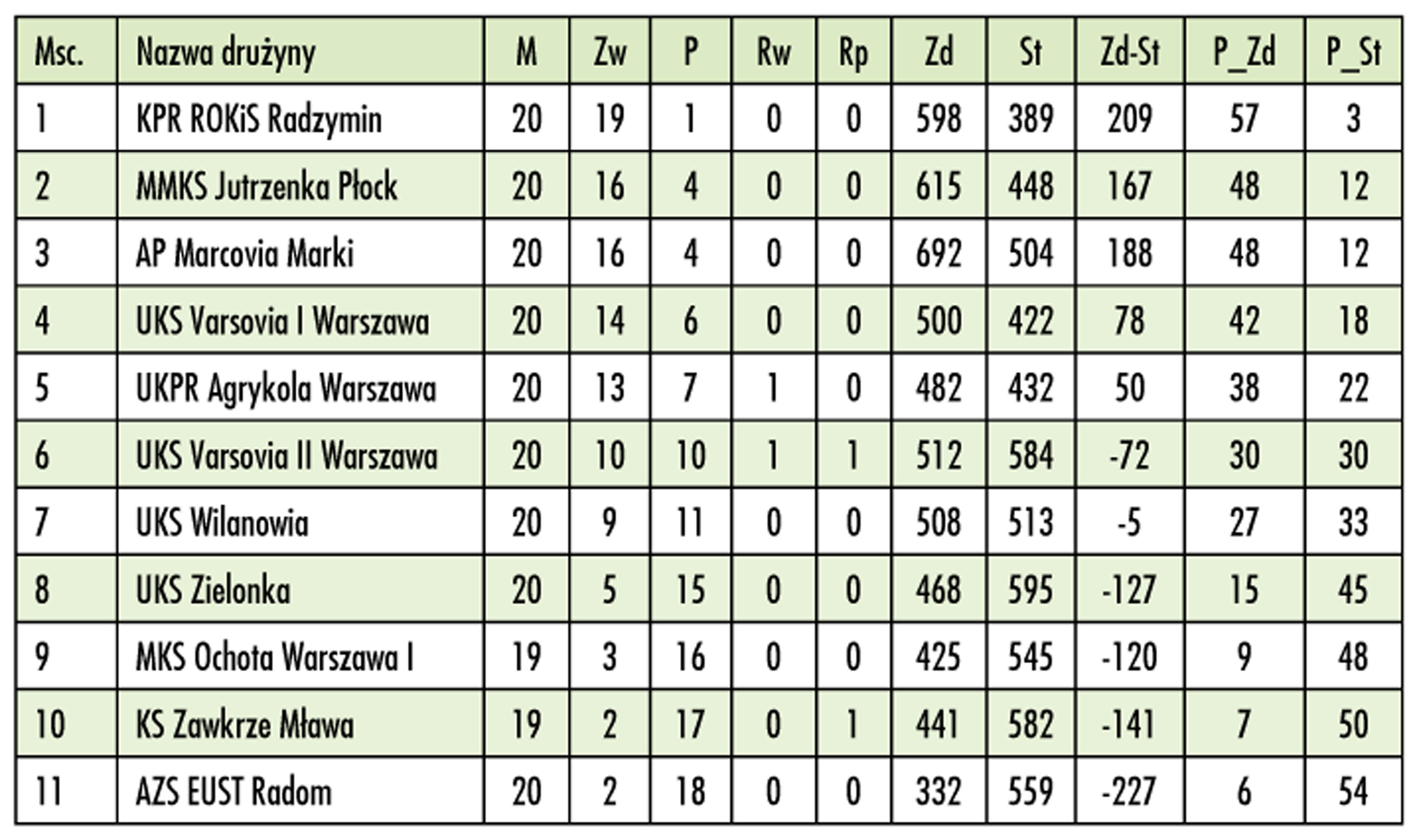 Młodziczki z klubu KPR ROKiS Radzymin, prowadzone przez trenerki: Agnieszkę Wardakowską, Ewę Filipek i Monikę Sawicką, w tym sezonie zagrały na bardzo wysokim poziomie pokonując swoje przeciwniczki i zdobywając w tej kategorii pierwsze miejsce oraz awans do rozgrywek szczebla centralnego.