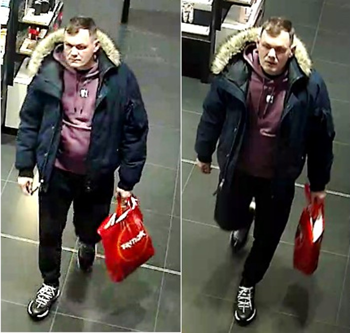 Mężczyzna ma około 35 lat, około 180 cm wzrostu, krótkie ciemne włosy; ubrany był w granatową kurtkę, fioletową bluzę, czarne spodnie, czarne buty sportowe z białym paskiem przy podeszwie. Miał ze sobą czerwoną torbę z widocznym logiem „TK Max”.