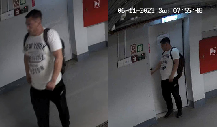 Mężczyzna ma około 30 lat, około 180 cm wzrostu, grubszą posturę ciała; ubrany był w białą koszulkę z napisem: „NEW YORK DIVISION”, czarne spodnie, czarne sportowe buty, miał plecak.